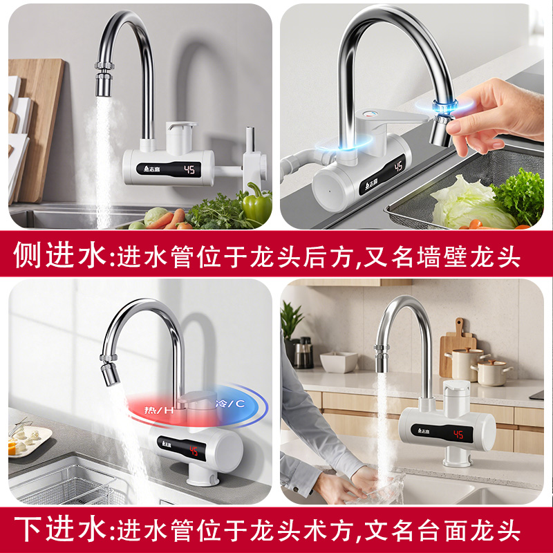 天猫双11大促沃牧速热电热水龙头侧进水即热式厨房卫生间热水器过水热
