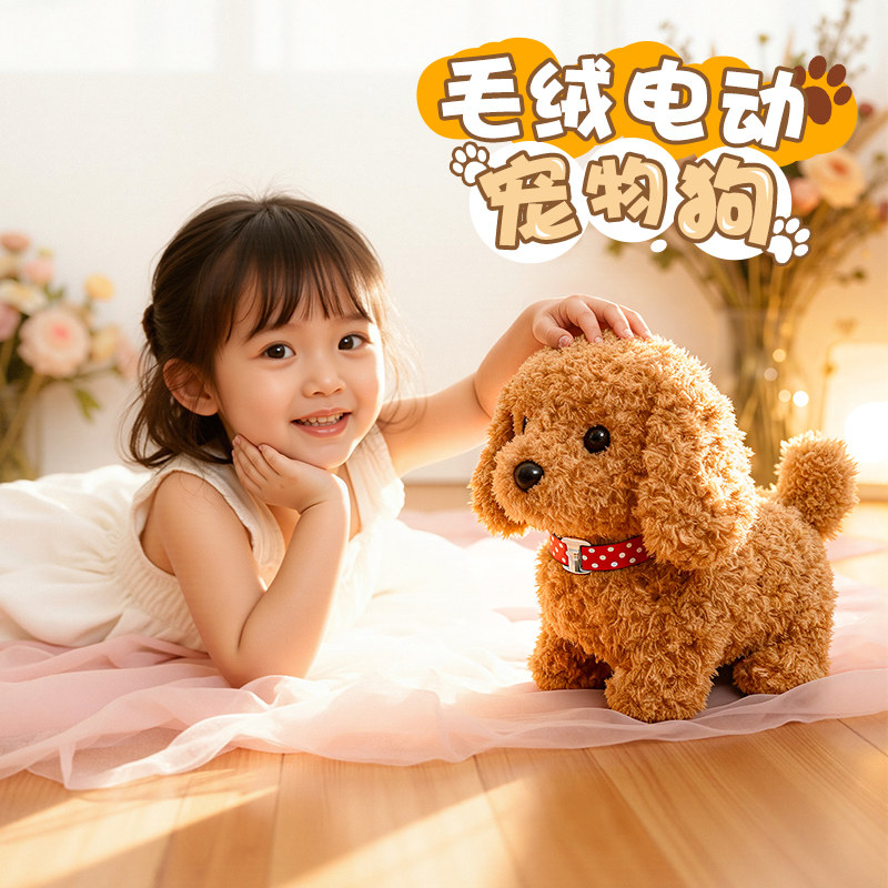 这款儿童玩具狗狗是一款高度仿真的电动毛绒萌宠,专为男孩女孩设计,是送给婴幼儿的绝佳礼物。它拥有柔软的毛绒材质,触感舒适,安全环保,适合孩子拥抱玩耍。内置智能感应系统,轻轻一拍即可启动,狗狗会迈步走路、摇头摆尾,并发出逼真的汪汪叫声和撒娇声,仿佛真狗一般生动有趣。操作简单,无需复杂设置,孩子可轻松互动。不仅能激发孩子的爱心与责任感,还能锻炼其听觉与肢体协调能力。无论是生日、节日还是日常惊喜,这款会走路会叫的仿真电动小狗狗,都将为孩子们带来无尽的欢乐与陪伴。