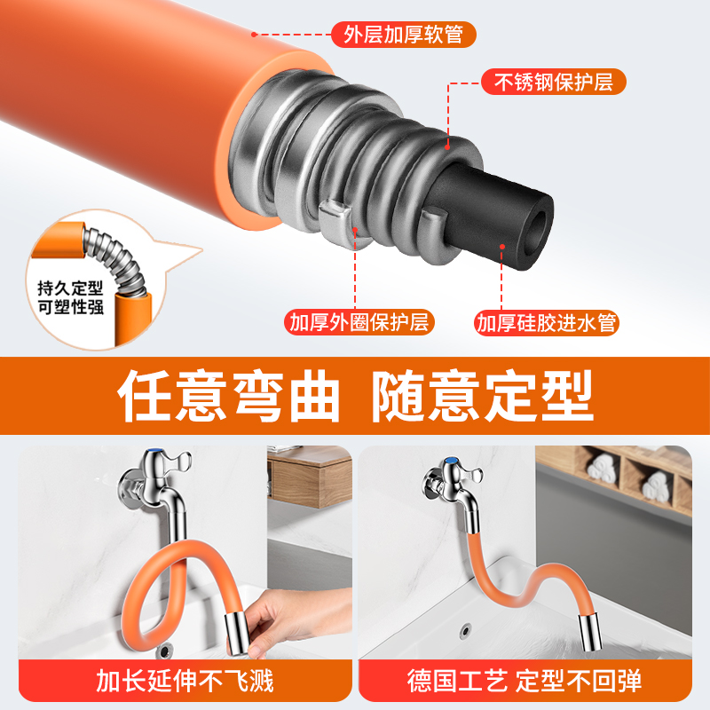 卫生间加长万向水龙头延伸器能万头嘴防溅延长管出水管可定型软管