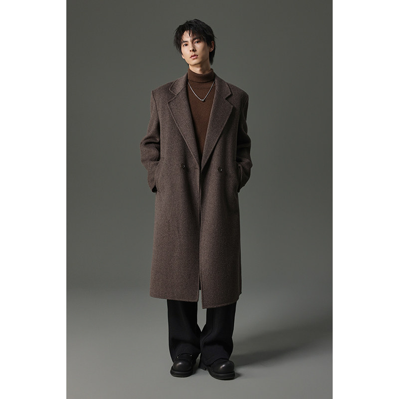 天猫【储格】重磅双面羊毛呢大衣男长款过膝冬季可脱垫肩加厚风衣外套