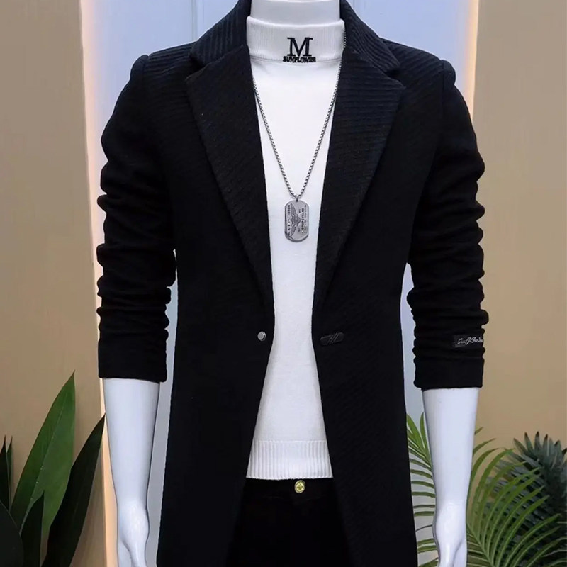 淘宝秋冬外套男纯色韩版潮流简约男士中长款风衣时尚网红发型师大衣