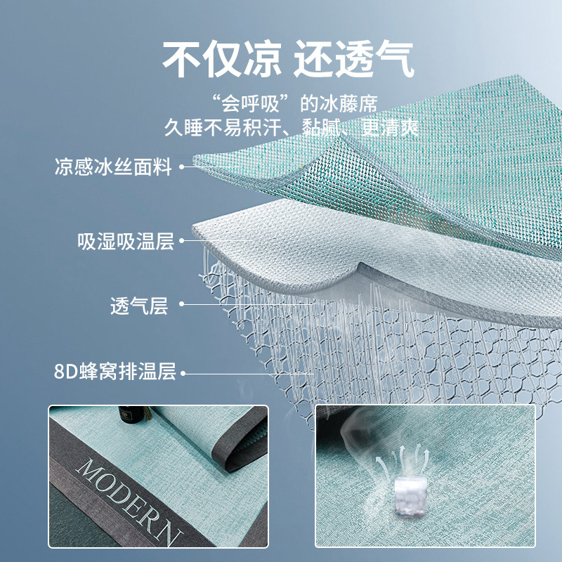 凉感冰丝夏季家用凉席可折叠床笠空调软席子亲肤透气藤席2026新款