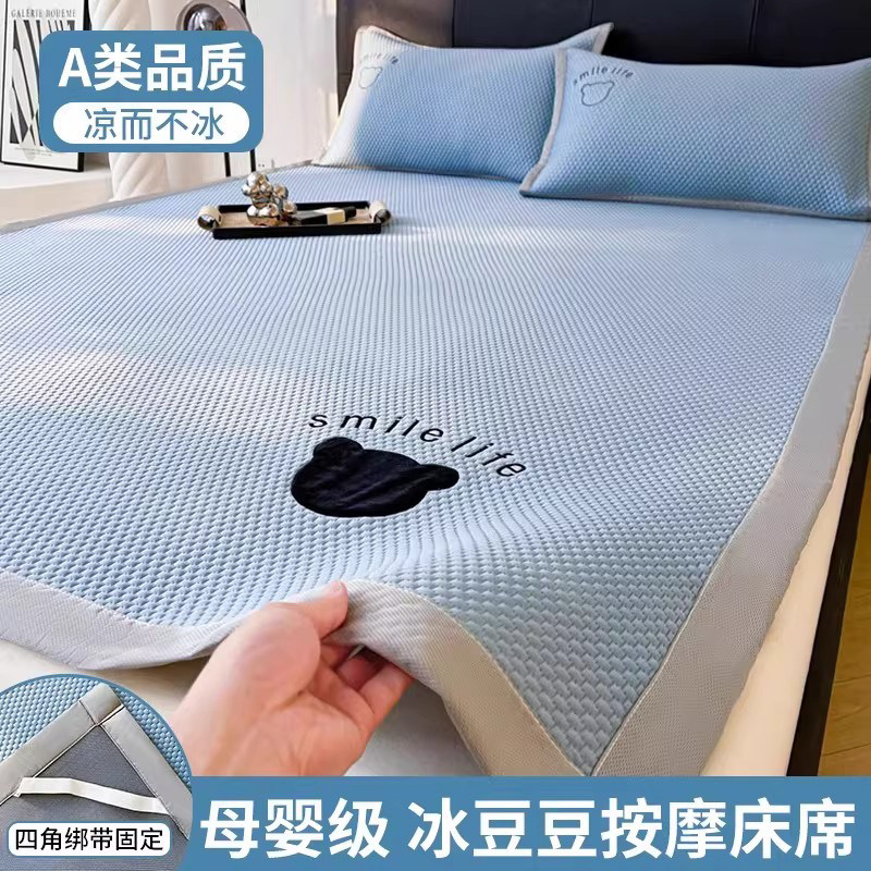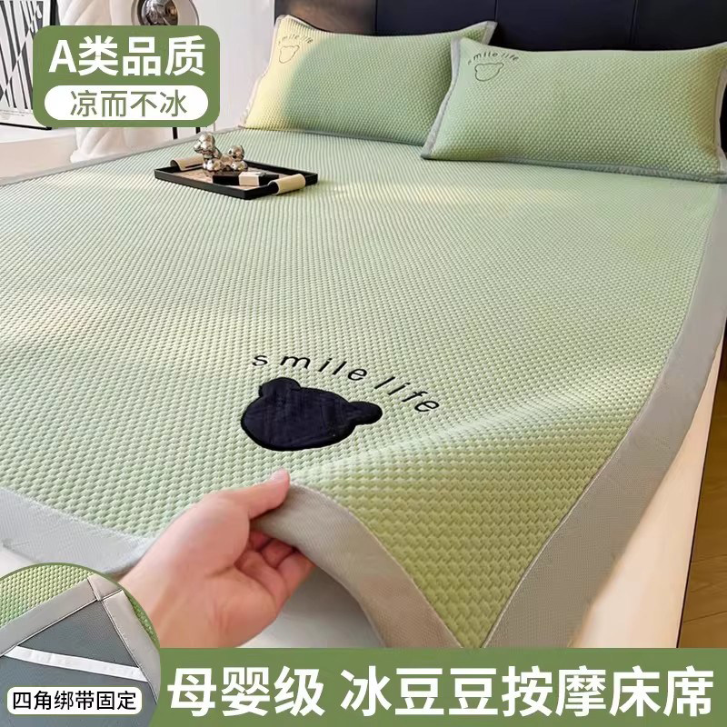 2025新款凉感冰豆豆凉席冰丝席床单垫可机洗水洗夏空调软席三件套