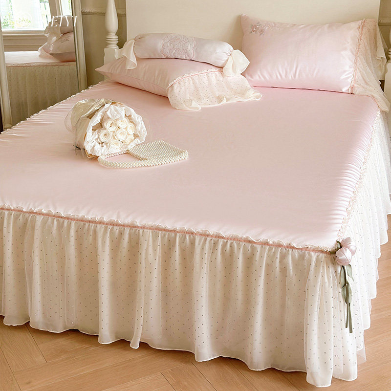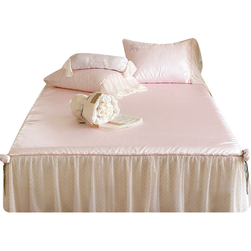 这款少女心床裙款冰丝凉席,专为夏日清爽睡眠设计,采用优质冰丝面料,触感柔滑亲肤,透气排湿,带来清凉体感。独特的床裙式设计,自然垂落包裹床垫,美观防滑,不易移位,提升整体家居高级感。清新甜美的粉嫩色调搭配细腻纹理,尽显少女浪漫气息。席面柔软舒适,可折叠收纳,节省空间,方便携带。支持机洗,清洁省心,耐用不变形。无论是卧室、宿舍还是租房,都能轻松营造温馨惬意的睡眠环境,是夏季必备的舒适凉席之选。