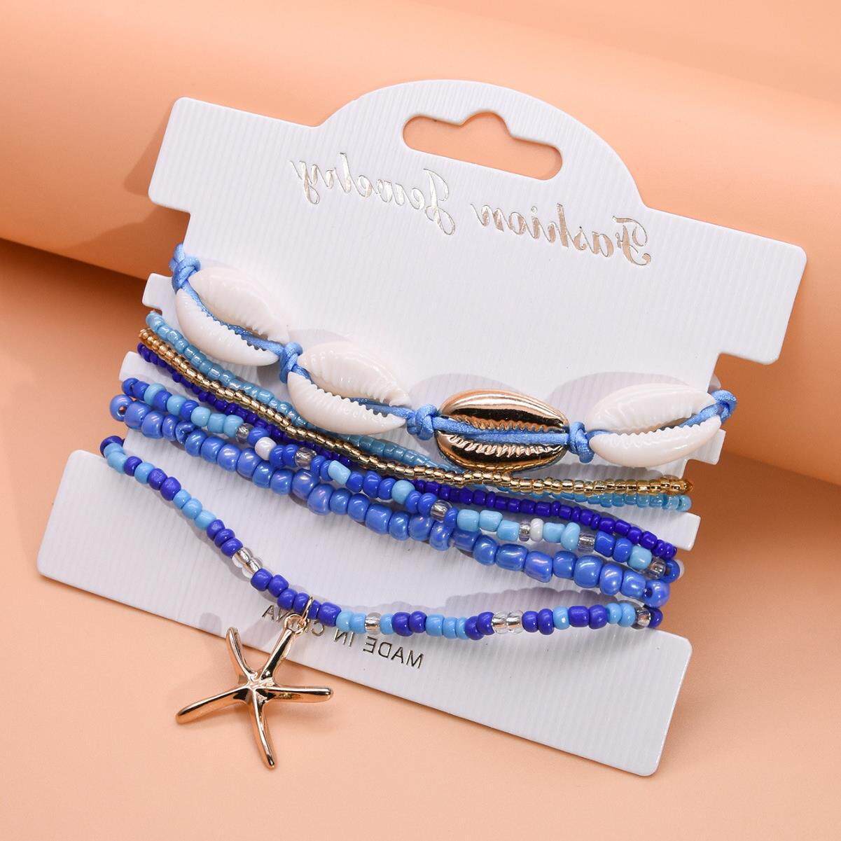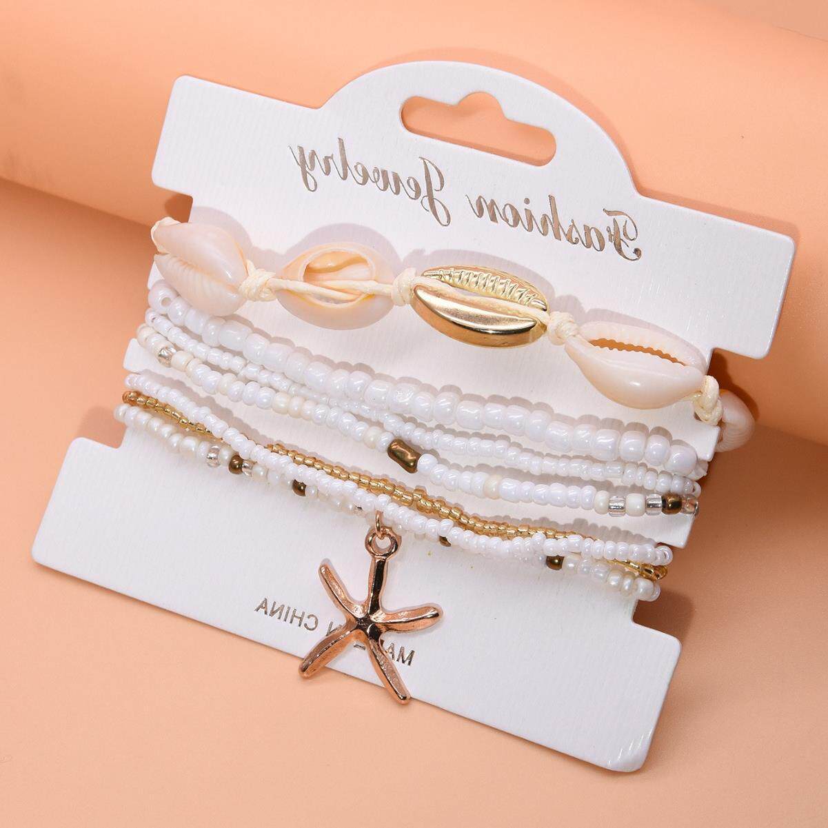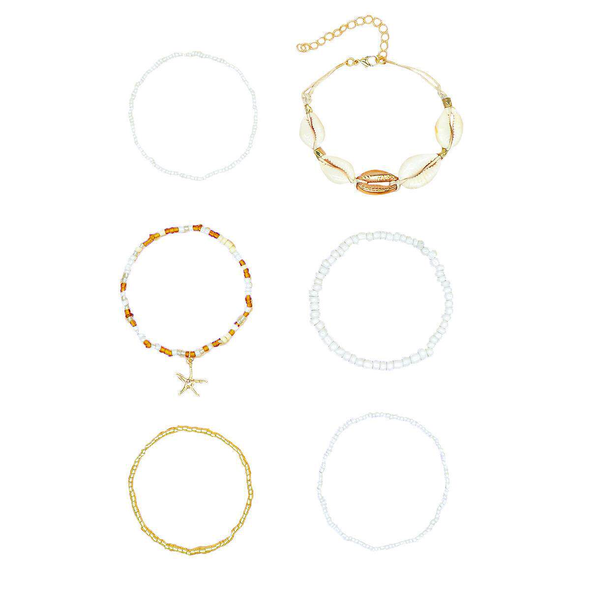 淘宝欧美时尚沙滩度假风贝壳海星米珠脚链春夏海洋风多层叠戴脚饰
