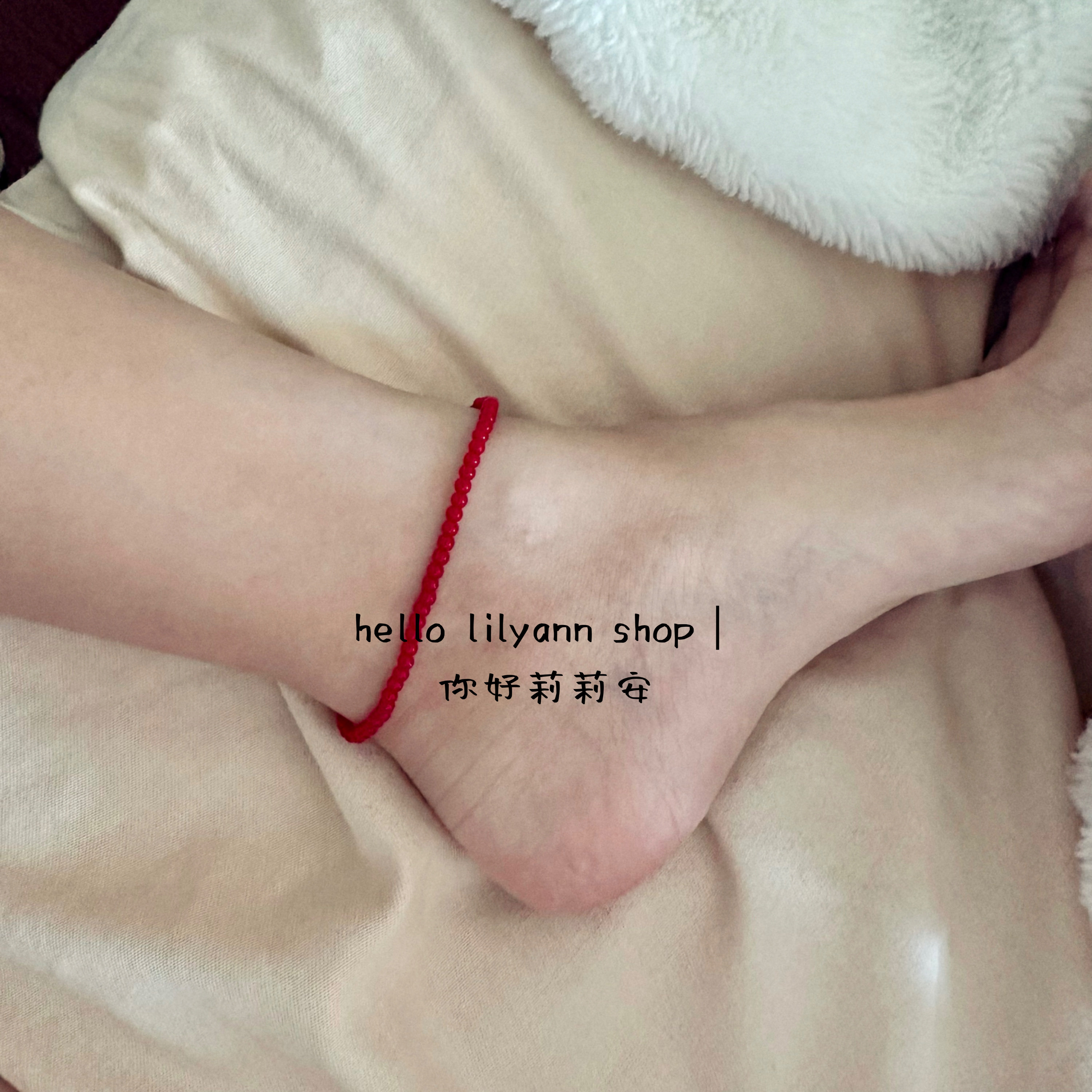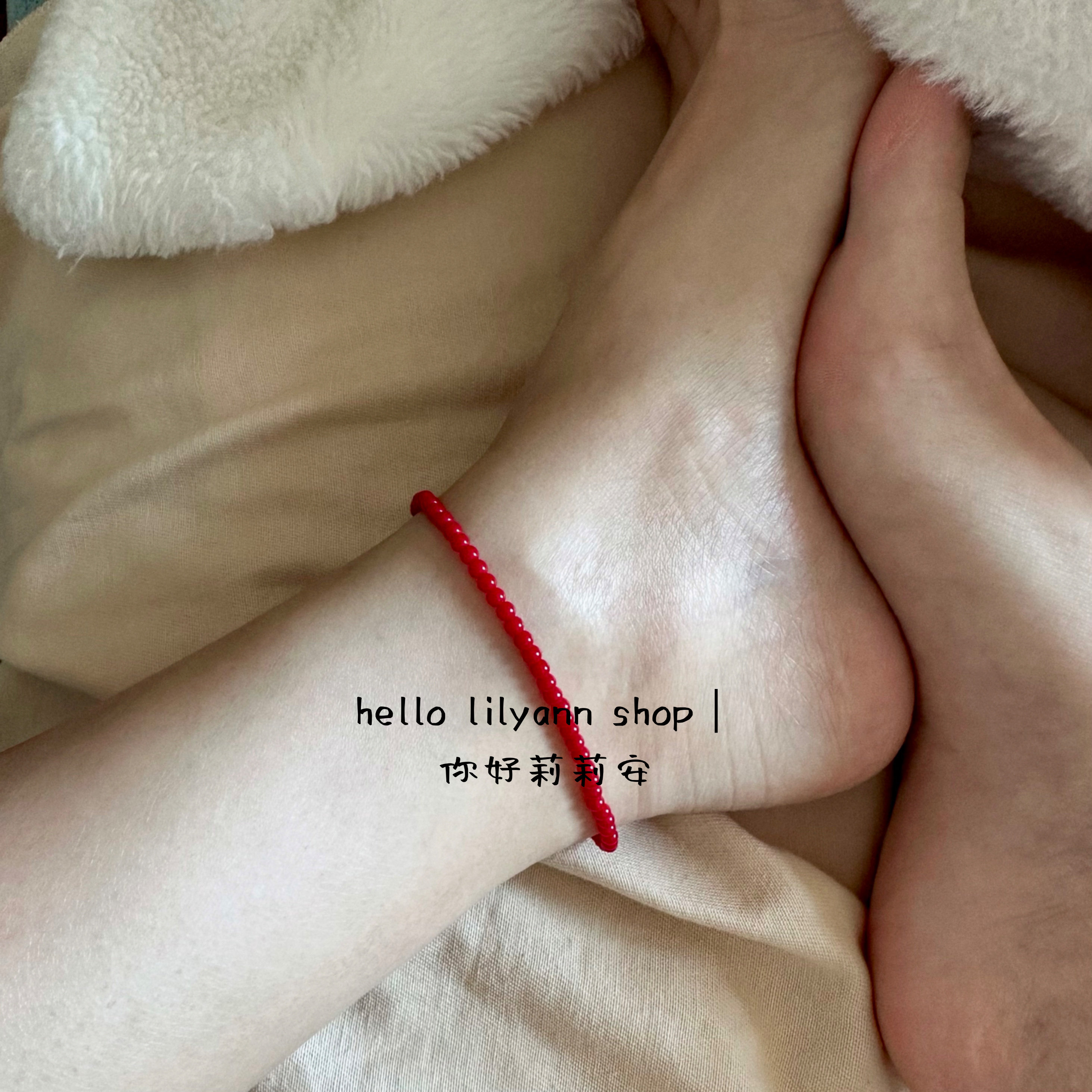 淘宝清冷感超显白红色脚链hello小众设计弹力串珠脚饰百搭叠戴ins简约