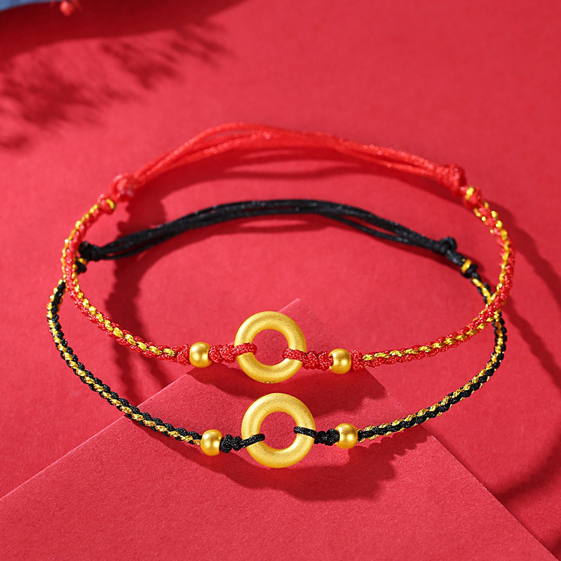 淘宝新款黄金平安扣脚链女士本命年红绳脚绳编织古法转运珠脚饰送礼物