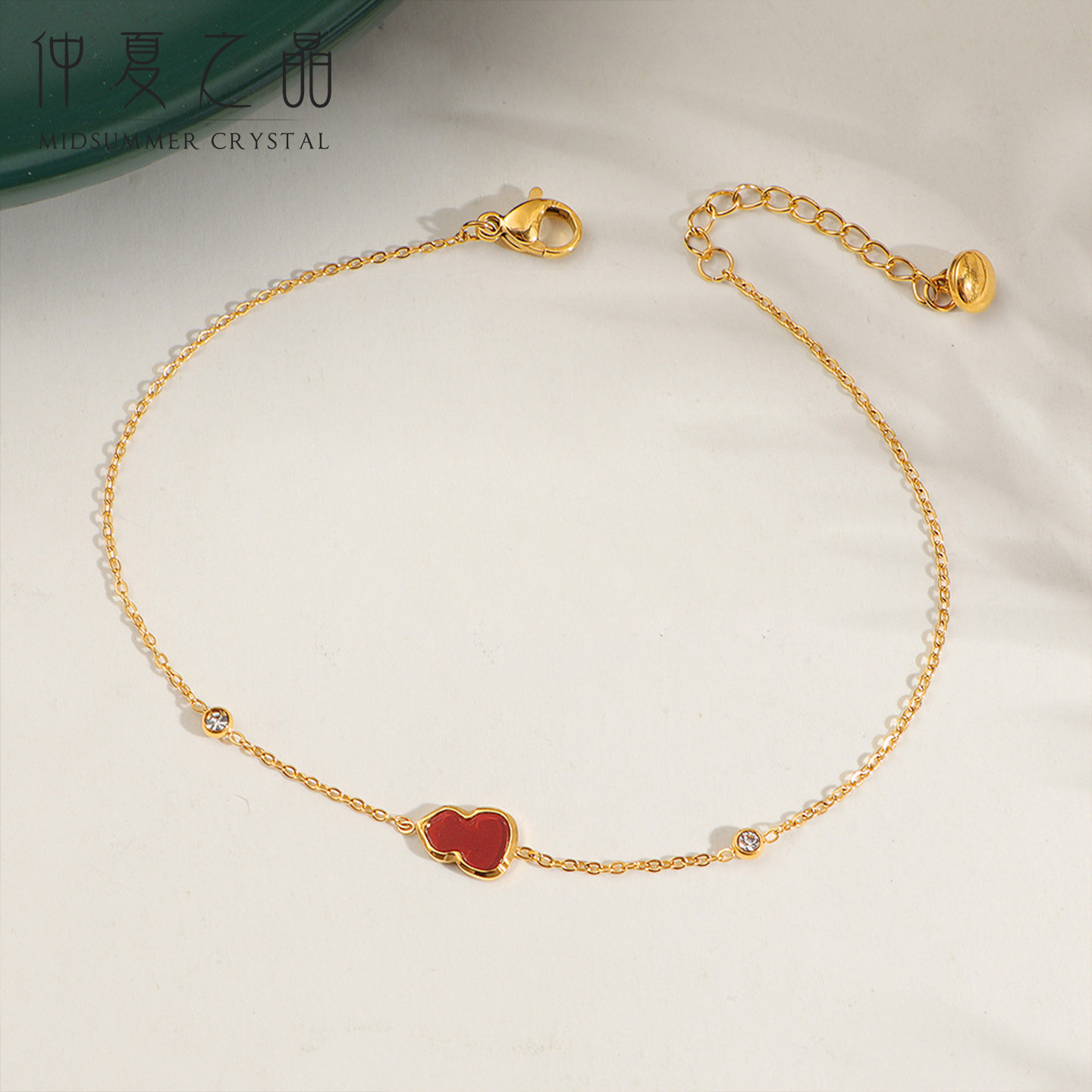 2026年新款红色葫芦脚链,以东方美学为灵感,融合现代轻奢设计理念,打造极具辨识度的小众足链配饰。精选优质金色链条,光泽细腻,轻盈贴合脚踝曲线;中央点缀朱红色葫芦吊坠,寓意福禄吉祥,色彩浓郁却不失雅致。链条可调节设计,适配不同脚型,佩戴舒适。无论是夏日搭配凉鞋、度假长裙,还是作为日常点睛之笔,皆能彰显独特个性与高级质感。这款脚链兼具艺术感与实戴性,是追求精致生活女性的理想之选,低调中流露轻奢品味,展现不凡时尚态度。
