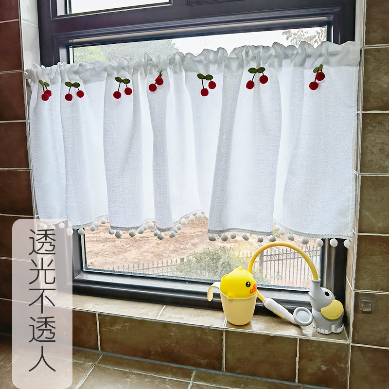 天猫不透人飘窗免打孔纱帘绷纱玻璃门帘魔术贴内开窗美式隔断帘窗帘