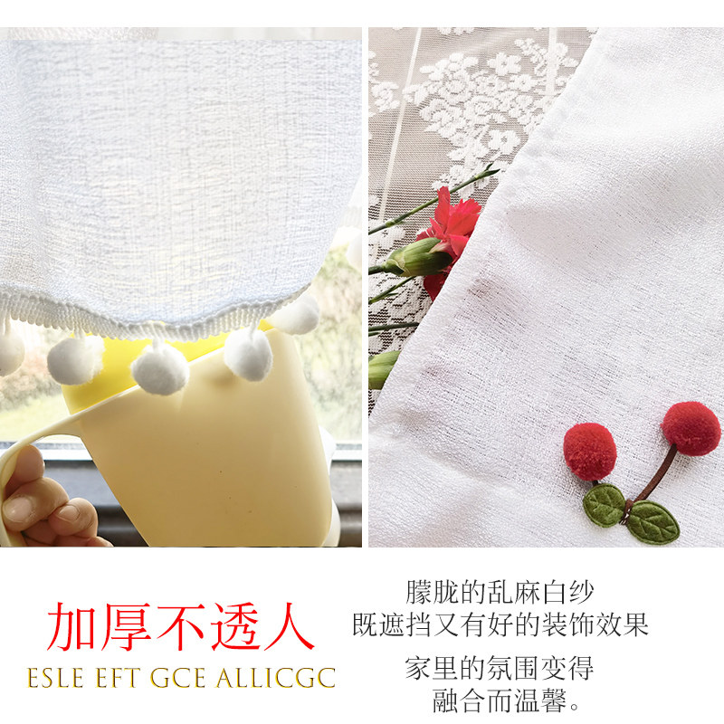 天厨房咖啡帘小清新成品穿杆小窗帘蓝色蕾丝短帘