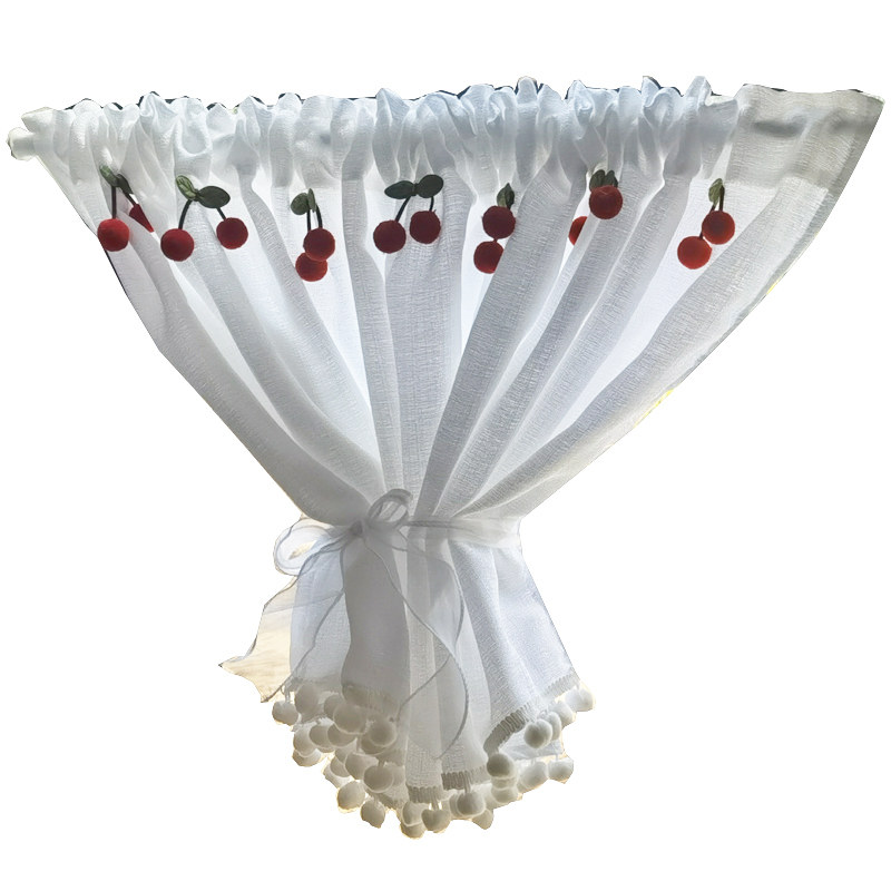 厨房咖啡帘小清新成品穿杆小窗帘蓝色蕾丝短帘