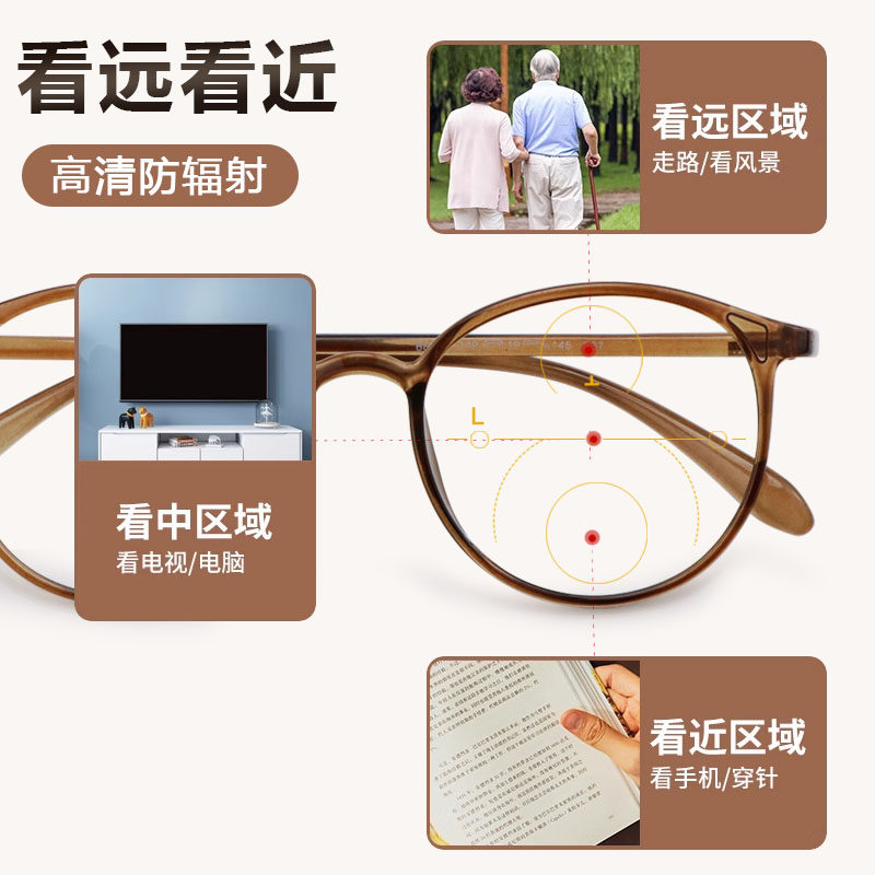 天猫智能老花镜女士自动调节度数变焦远中近三用高清防蓝光超轻型眼镜