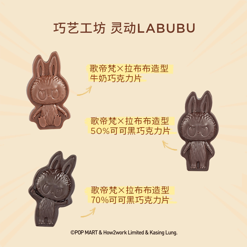 【直播专属】Godiva歌帝梵携手拉布布推出联名款立体黑巧礼盒,将比利时精湛工艺与萌趣设计完美融合。精选优质可可豆,匠心打造丝滑浓郁的黑巧克力,每一颗都蕴含醇厚风味与细腻口感。礼盒采用立体造型,萌趣可爱的拉布布形象跃然眼前,兼具收藏与馈赠价值。无论是自享还是赠予亲友,都能传递满满心意与高端品味。此次直播专属发售,限量呈现,为巧克力爱好者带来视觉与味觉的双重惊喜。Godiva始终坚持比利时传统巧克力制作工艺,让每一刻甜蜜都值得珍藏。