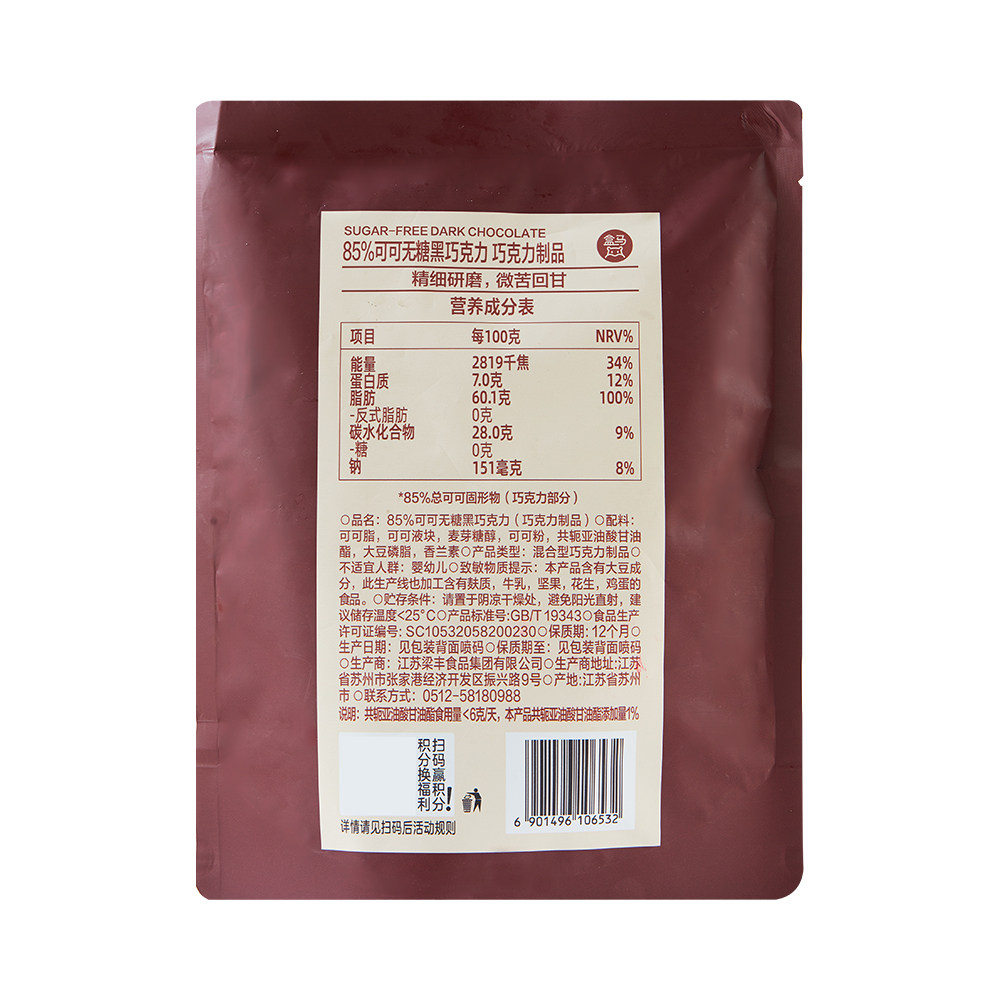 盒马85%可可无糖黑巧克力200g,精选优质可可豆精制而成,可可含量高达85%,口感浓郁醇厚,微苦回甘,带来纯正的巧克力体验。采用天然代糖替代蔗糖,0添加白砂糖,满足健康控糖人群的需求,兼顾美味与低负担。每块巧克力质地细腻,入口即化,富含抗氧化成分,有助于提升专注力与情绪。200g适中包装,便于携带与分享,适合日常零食、办公提神或烘焙使用。盒马严选品质,确保每一口都安全放心。无论是巧克力爱好者,还是追求健康生活方式的消费者,这款无糖黑巧克力都是理想之选,让美味与健康兼得。