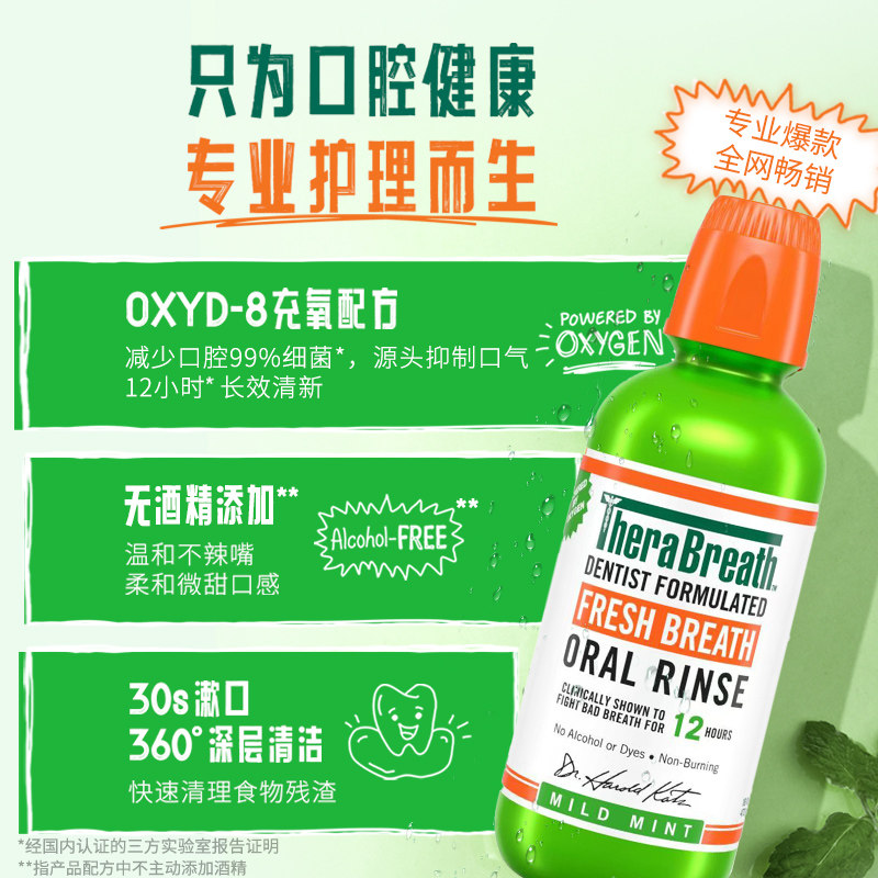 天猫TheraBreath凯斯博士漱口水温和薄荷男女持久清新