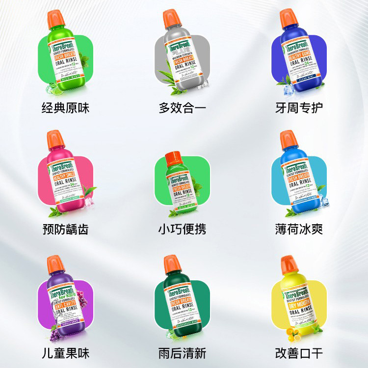 TheraBreath凯斯博士漱口水是一款源自美国的专业口腔护理产品,采用无酒精配方,温和不刺激,适合敏感人群日常使用。其核心成分OXYD-8™能有效中和口腔异味根源,持久保持口气清新长达12小时。便携旅行装设计小巧轻便,方便随身携带,无论是在办公室、出差还是旅途中都能随时使用。不含糖、无人工色素,符合健康护齿理念。由牙科医生Dr. Harold Katz研发,经临床验证,安全有效。无论是应对晨起口气、餐后清洁,还是提升社交自信,TheraBreath都是值得信赖的选择,让您随时随地拥有清新舒爽的呼吸体验。