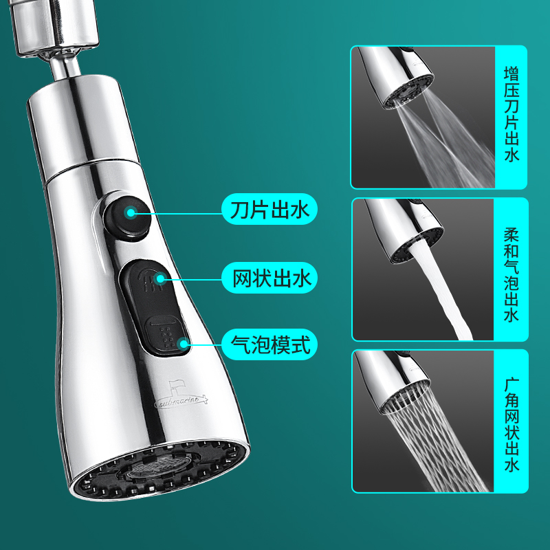 淘通用厨房增压水龙头防溅水万向旋转加长延伸起泡花洒喷头家用节水