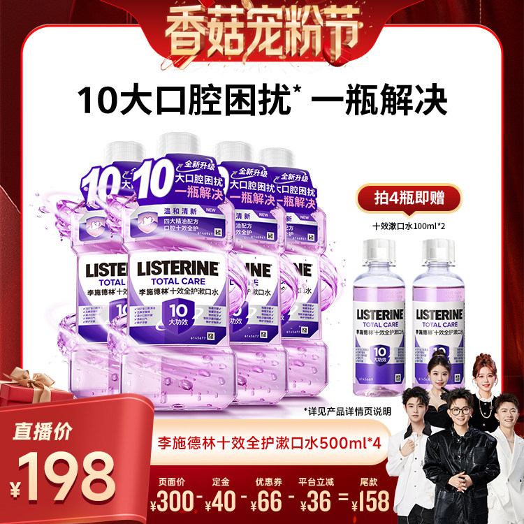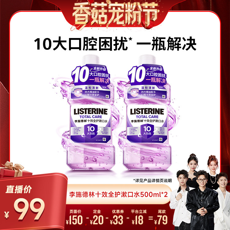 【先加购!20号20点付定】李施德林零度十效全护精油漱口水,全新升级配方,0酒精温和不刺激,带来清爽洁净体验。蕴含天然精油成分,深层清洁口腔,有效减少99%细菌,预防牙龈问题、口臭及牙菌斑。十效全护,全面守护口腔健康,包括清新口气、强健牙龈、减少牙渍、预防蛀牙等。口感清凉舒适,无辛辣感,适合敏感人群日常使用。早晚刷牙后使用30秒,即可感受持久清新。科学配方经牙医推荐,安全有效。现在提前加购,20号20点准时付定金,享受超值优惠,为全家口腔健康保驾护航!