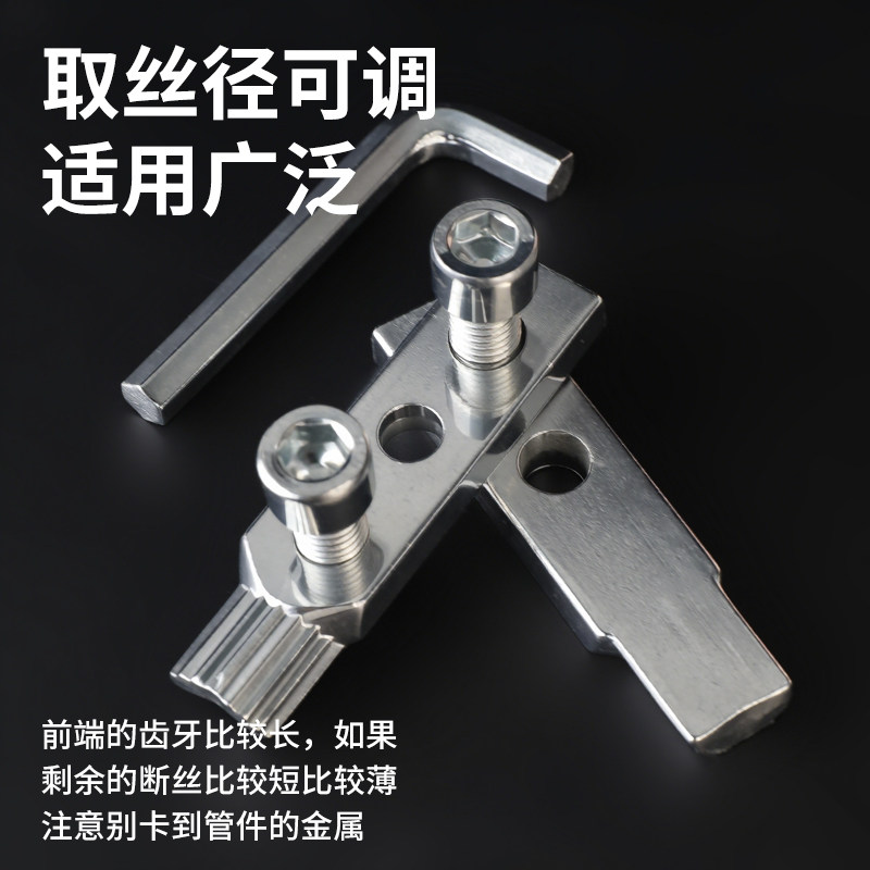 新款水龙头角阀断丝取出工具,专为解决内丝断头、水管断裂、螺丝卡死等棘手问题而设计。采用高强度合金钢材质,配备反丝丝锥结构,可精准咬合断裂残留的金属断丝,轻松旋出而不损伤管道。适用于常见4分、6分角阀及水龙头接口,操作简单,仅需扳手配合即可快速拆卸。工具小巧便携,适合家庭维修、水电安装及管道维护场景。无论是生锈卡死的角阀,还是施工中断裂在墙内的铜丝头,都能高效应对,避免砸墙换管的高成本困扰。是专业师傅和家庭用户的实用维修利器,提升维修效率,节省时间与费用。
