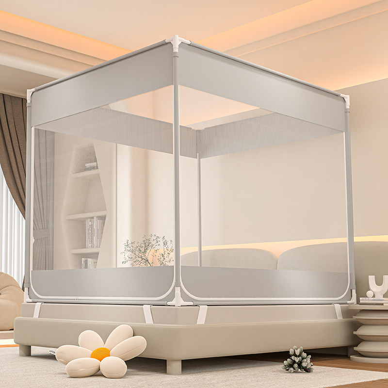 淘新型蚊帐带加粗不锈钢支架1.5加密加厚帐纱落地家用三开门防尘顶