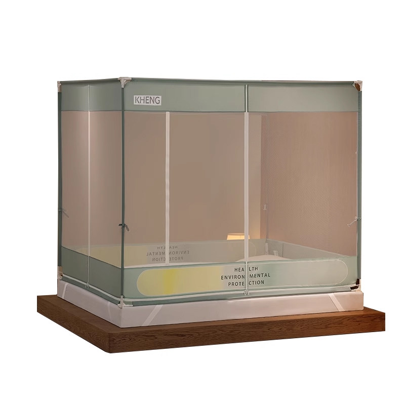 新型蚊帐带加粗不锈钢支架1.5加密加厚帐纱落地家用三开门防尘顶