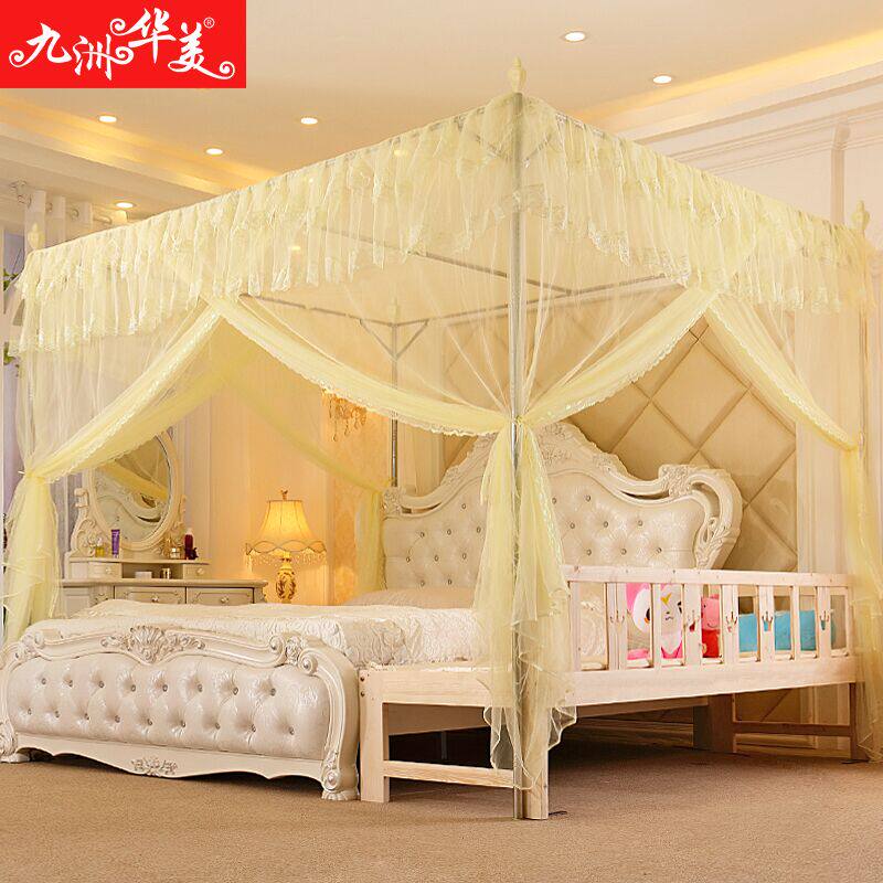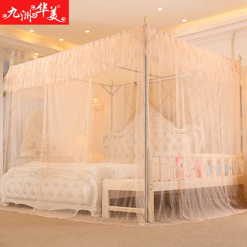 淘新型蚊帐带加粗不锈钢支架1.5加密加厚帐纱落地家用三开门防尘顶