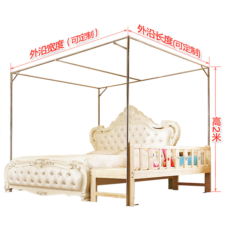 淘蚊帐支架杆加粗加厚家用不锈钢落地1.5m1.8米床带架子老式免安装