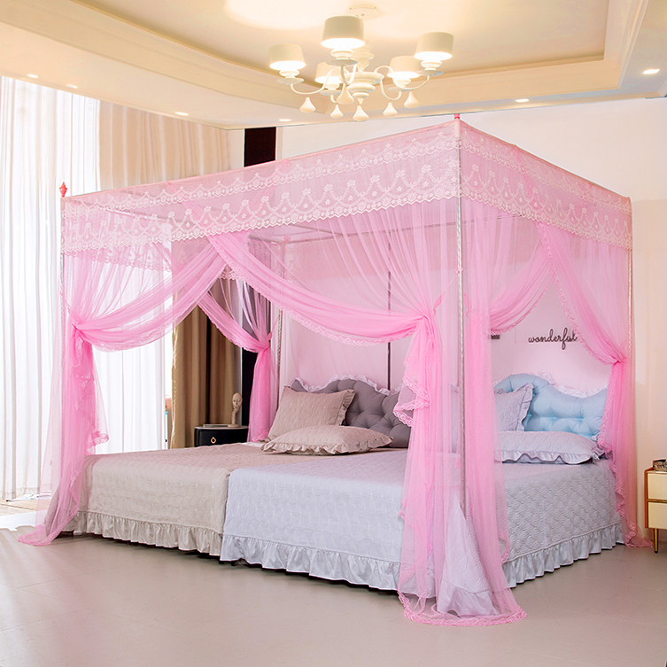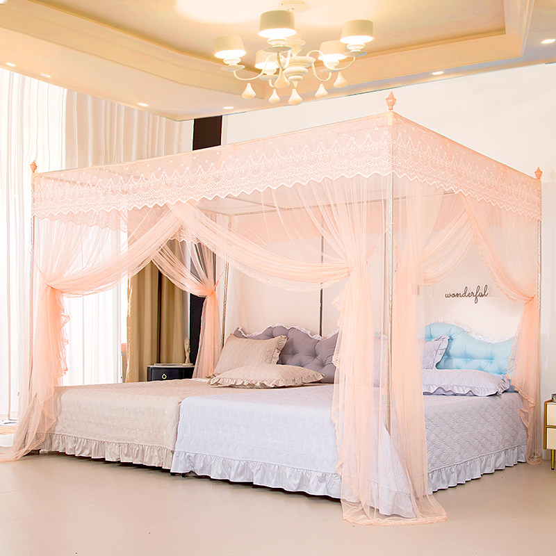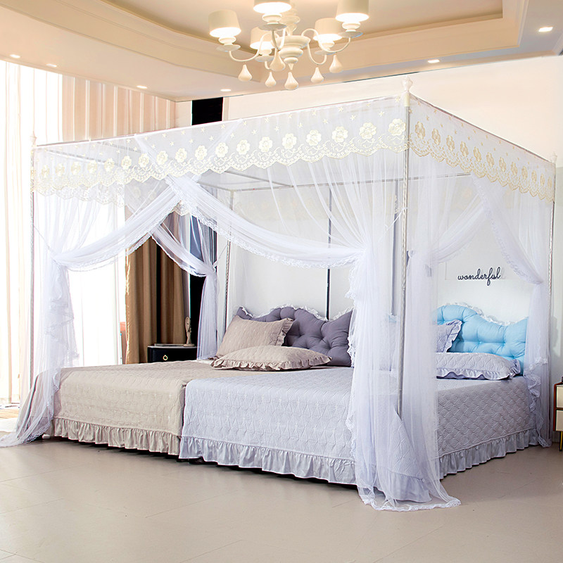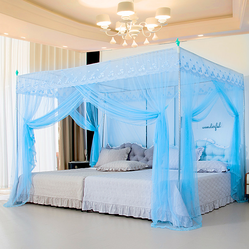 淘新型蚊帐带加粗不锈钢支架1.5加密加厚帐纱落地家用三开门防尘顶