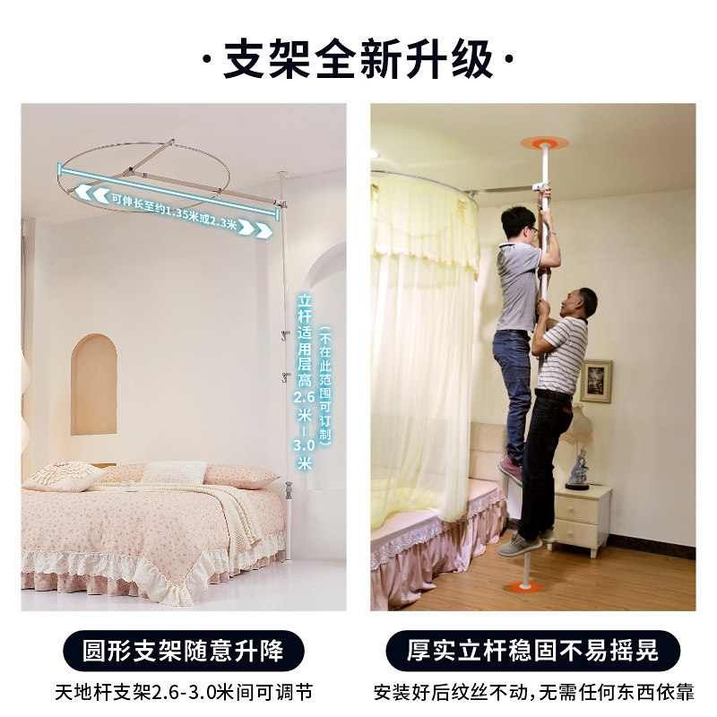 新版天地杆圆顶蚊帐支架吊顶挂架子顶天立地挂钩支撑免安装不打孔