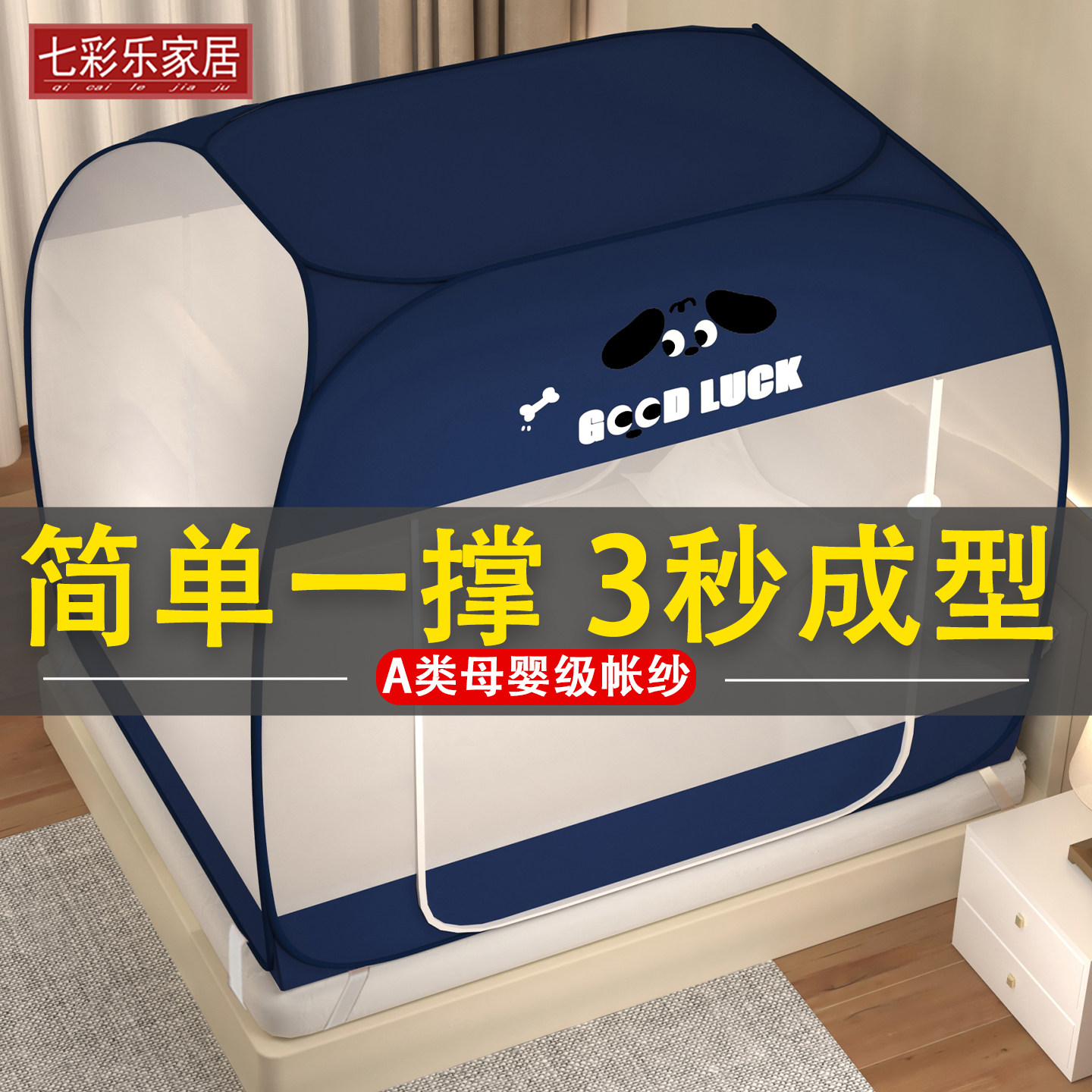 淘宝蒙古包蚊帐1.5m床宿舍免安装折叠拉链有底单双人1.2米/1.8m床家用