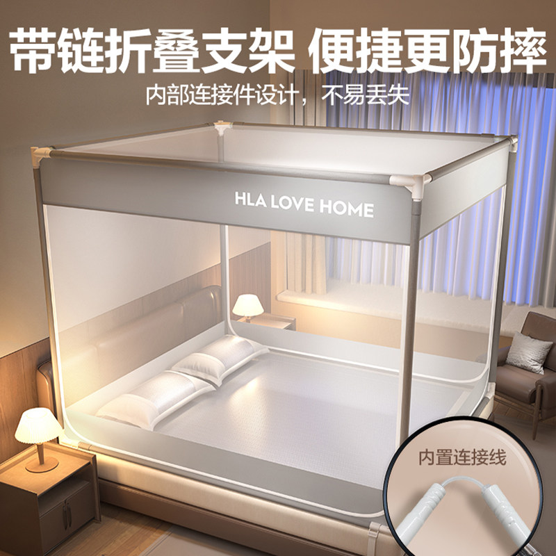 淘新型蚊帐带加粗不锈钢支架1.5加密加厚帐纱落地家用三开门防尘顶