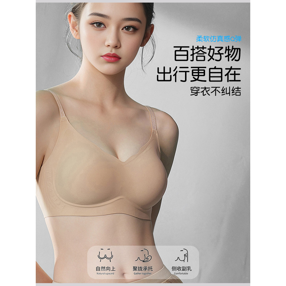 淘宝无痕果冻无感舒适小胸聚拢显大AA内衣少女无钢圈文胸胸罩粉底性感