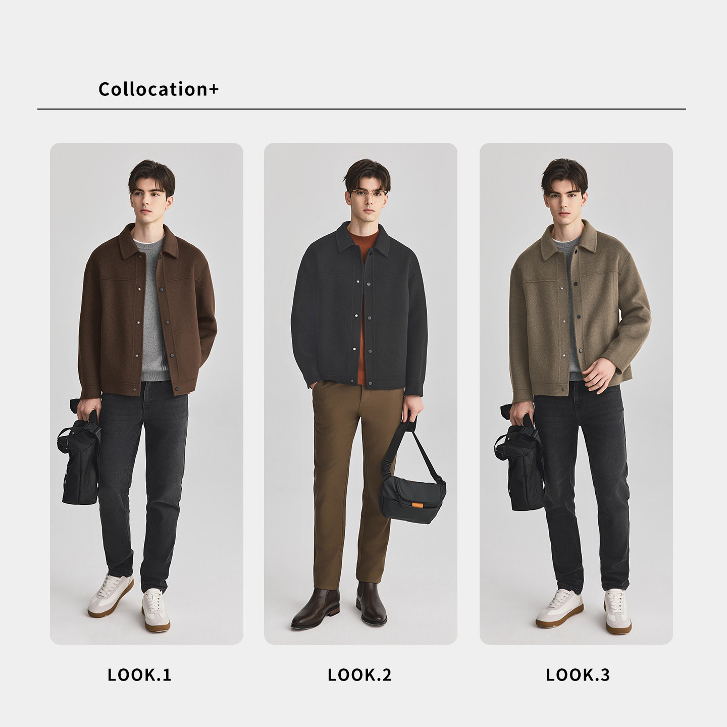 双面绒外套男士羊毛呢子大衣短款秋冬季2025新款翻领夹克高端加厚