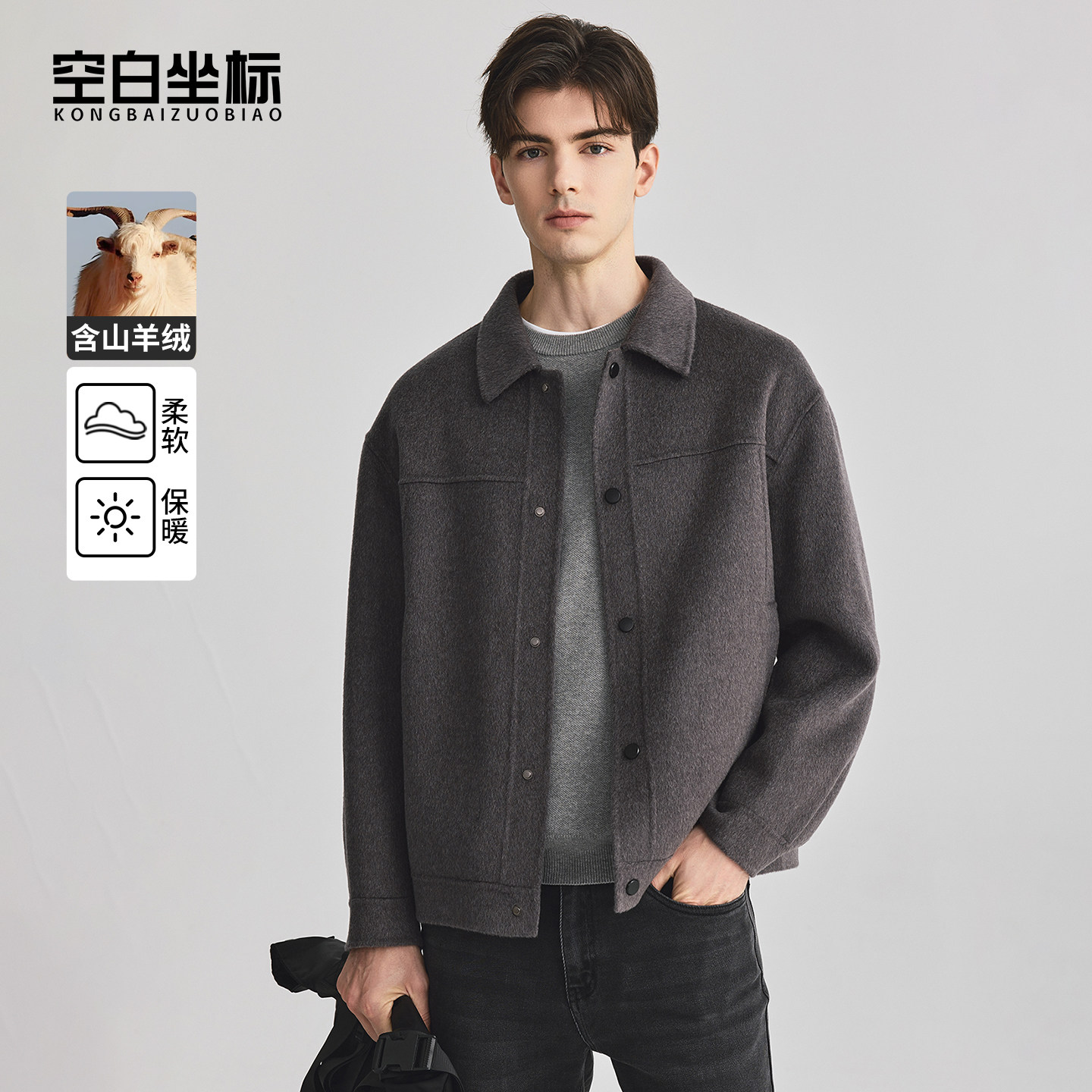 天猫空白坐标短款毛呢2026冬季新款双面呢大衣绵羊毛夹克男士翻领外套