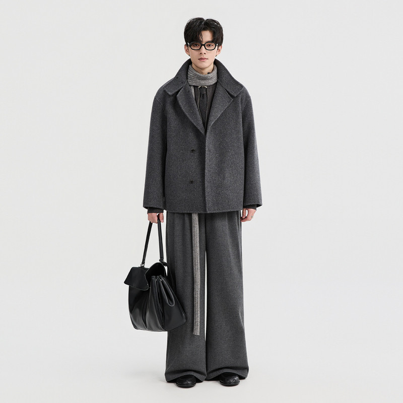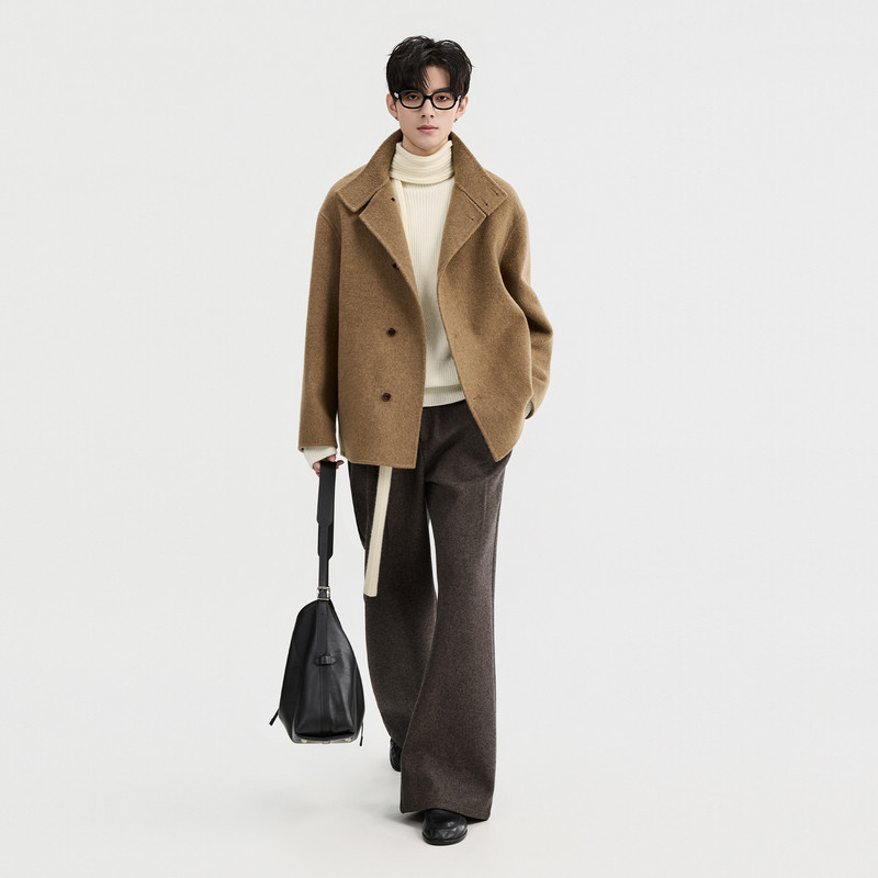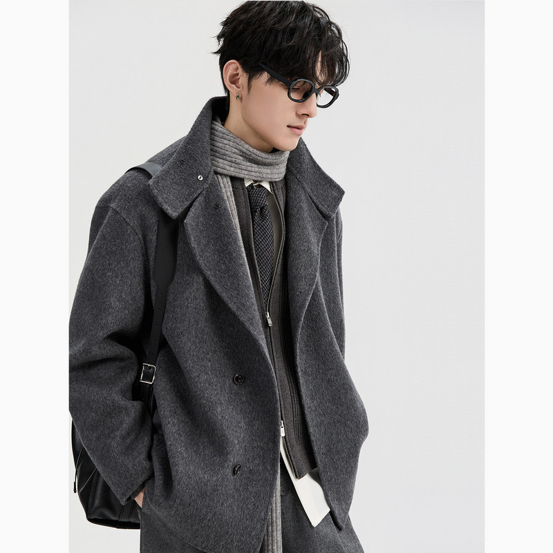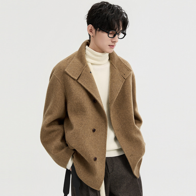 空白坐标短款毛呢2026冬季新款双面呢大衣绵羊毛夹克男士翻领外套