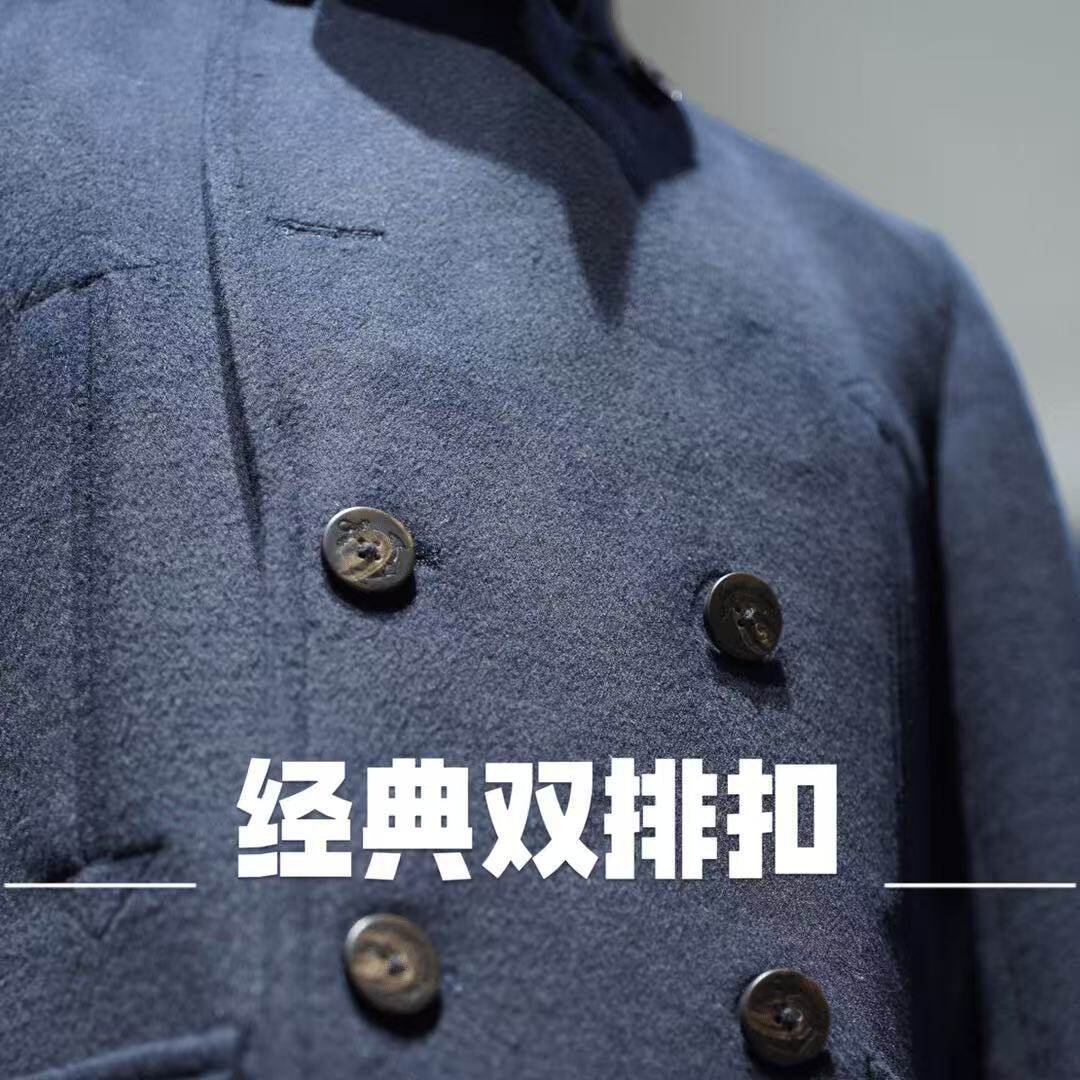 鸟家羊毛呢大衣深蓝色立领冬季外套青年休闲羊毛保暖上衣97031