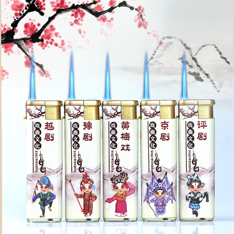 淘新款防风蓝焰防爆渐变色可爱卡通图案金属摇臂式充气打火机批发