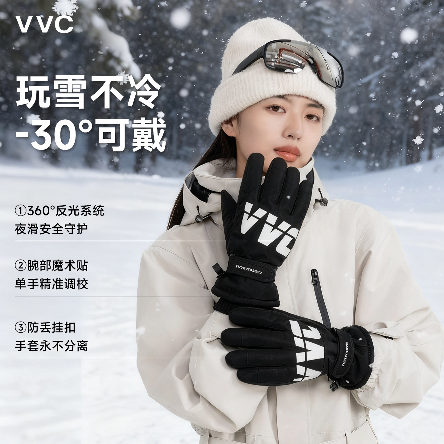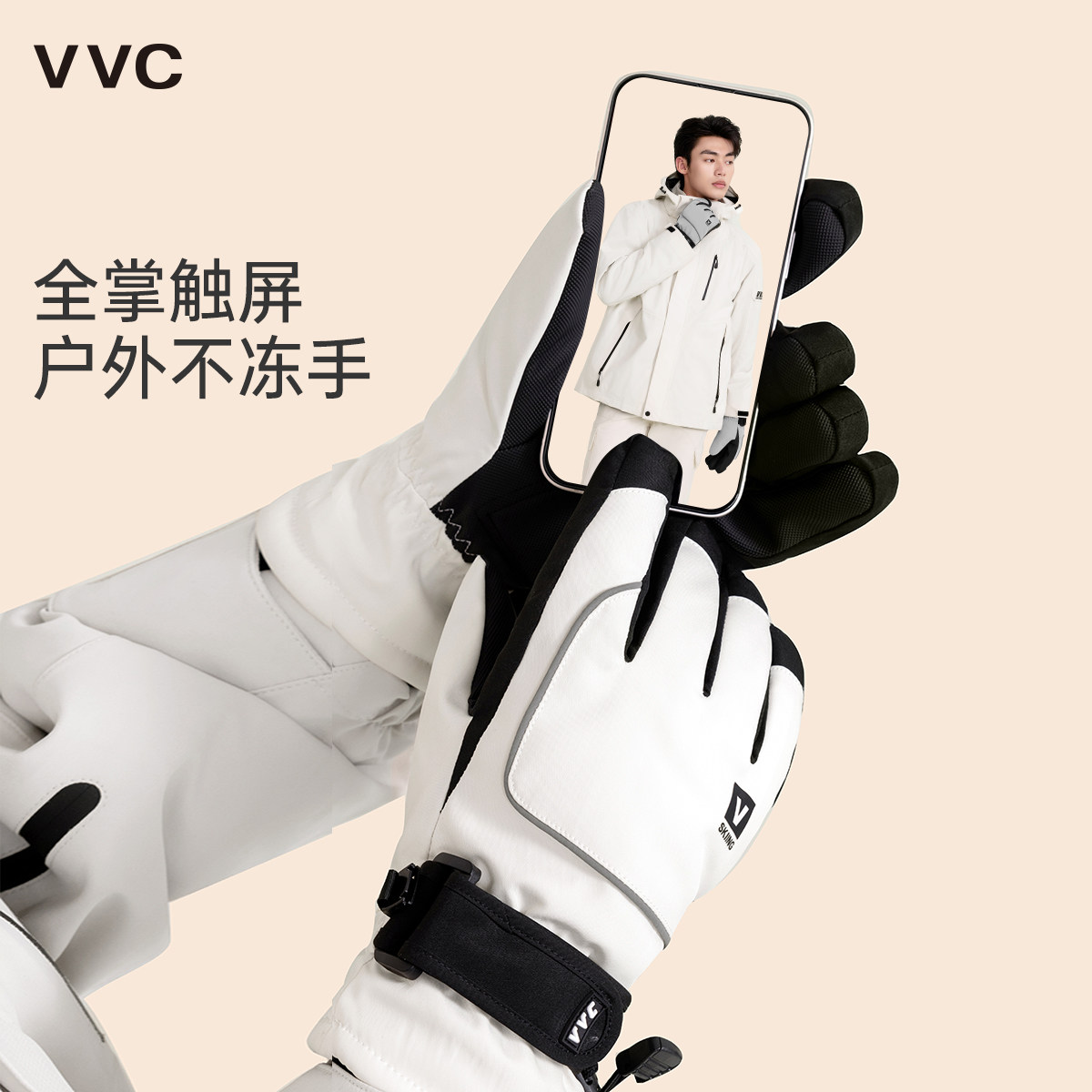天猫VVC冬季骑行手套男女保暖防风防水防寒滑雪手套触屏加绒加厚骑车