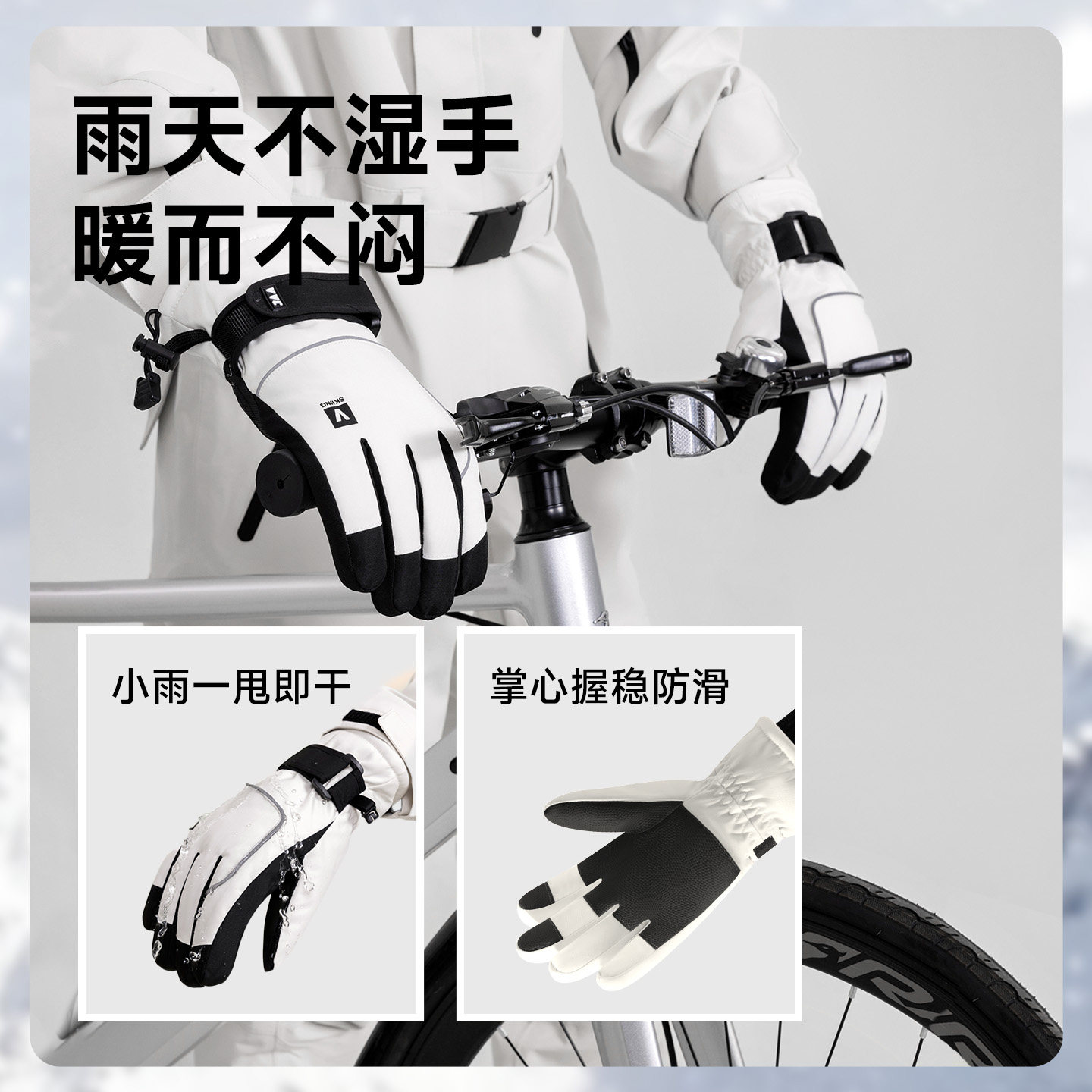 VVC冬季骑行手套专为严寒天气设计,男女通用,兼具保暖、防风、防水与触屏功能。采用加绒加厚内衬,有效锁住体温,抵御寒风侵袭;外层防水面料可阻挡雨雪渗透,保持双手干爽。掌心防滑耐磨设计,提升骑行操控性与安全性。指尖支持触屏操作,无需脱手套即可接打电话或导航。适用于骑行、滑雪、登山等多种户外场景,兼顾舒适性与实用性。弹性袖口紧密贴合手腕,防止冷风灌入。VVC手套以高品质工艺打造,是冬季户外运动的理想伴侣,让温暖与便利同行。