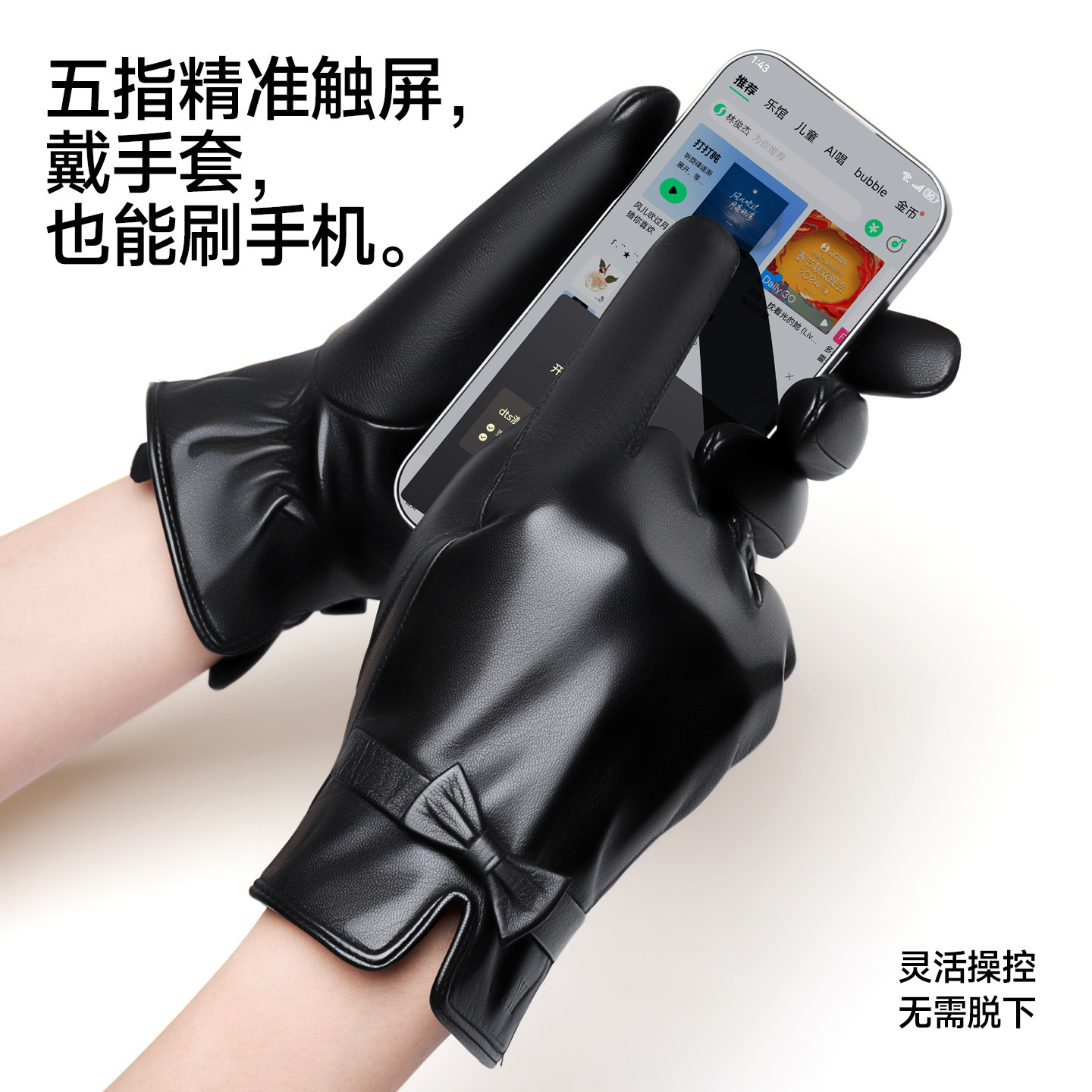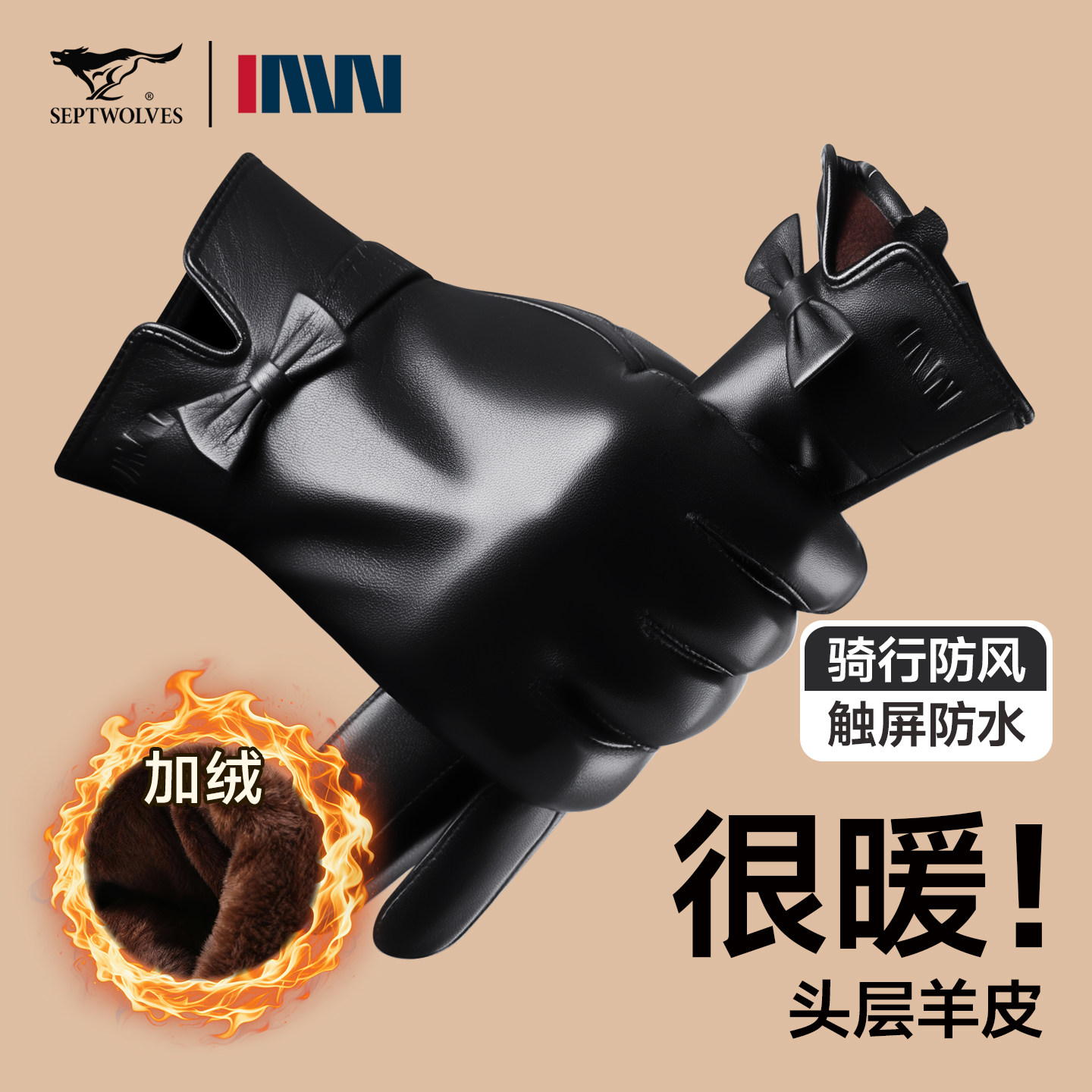 天猫七匹狼羊皮2025新款冬季骑行手套女士真皮加绒保暖皮手套防风防寒