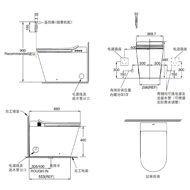先科小户型智能马桶58cm小尺寸一体式全自动翻盖多功能短款坐便器