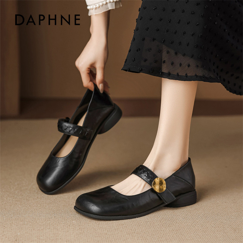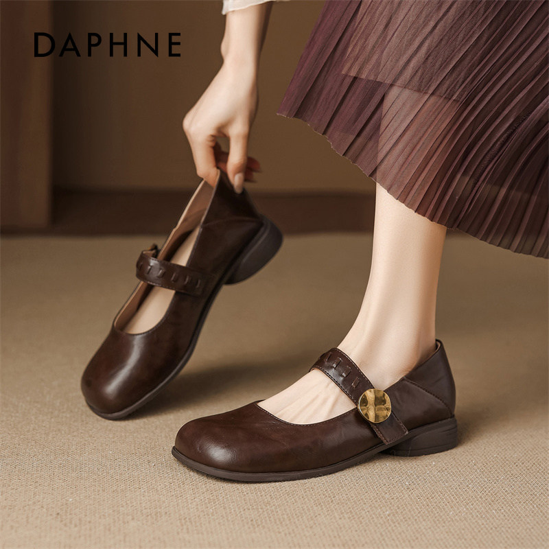达芙妮2026春季新款复古法式玛丽珍鞋,专为优雅妈妈打造。采用柔软小牛皮材质,亲肤透气,搭配舒适软底设计,久走不累。经典玛丽珍扣带点缀,融合法式复古韵味,轻松驾驭通勤、约会或日常穿搭。低跟设计稳重安全,兼顾时尚与实用。无论是搭配连衣裙、半身裙还是休闲裤装,都能展现温柔知性气质。精致缝线工艺与复古色调相得益彰,细节尽显品质。这款单鞋不仅是妈妈们的贴心之选,更是春日造型的点睛之笔,让每一步都散发从容魅力。