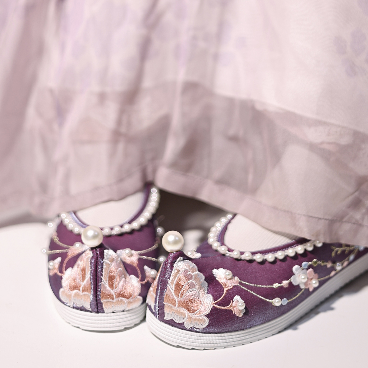 淘宝江南朱记原创【素央】串珠汉服鞋内增高古风翘头布鞋弓鞋绣花鞋