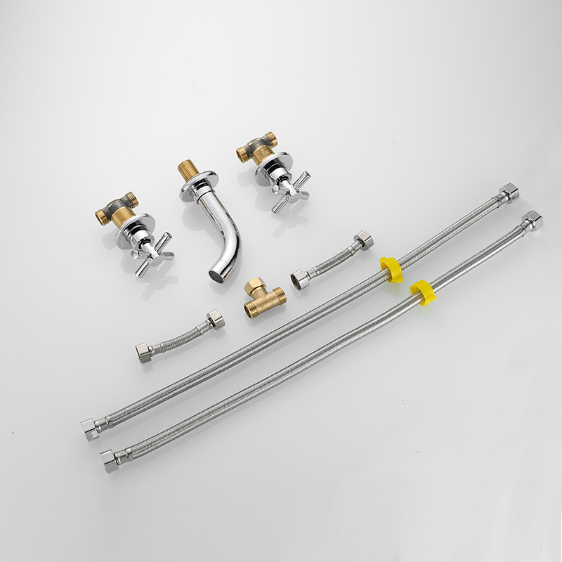 全铜双把水龙头冷热侧装开关配件三孔分体入墙三件套面盆水龙头,采用优质全铜材质铸造,坚固耐用,抗腐蚀性强,确保长期使用不生锈。采用分体式设计,冷热水独立控制,操作便捷,精准调节水温。三孔安装结构适配标准面盆,侧装开关节省台面空间,美观实用。入墙式预埋设计,管道隐藏,整体简洁大方,提升浴室或厨房的现代感。配备高精度陶瓷阀芯,开关顺滑,密封性好,有效防止滴漏。适用于家庭、酒店、别墅等多种场景,兼具实用性与装饰性,是现代卫浴空间的理想选择。安装简便,维护轻松,品质可靠,持久如新。