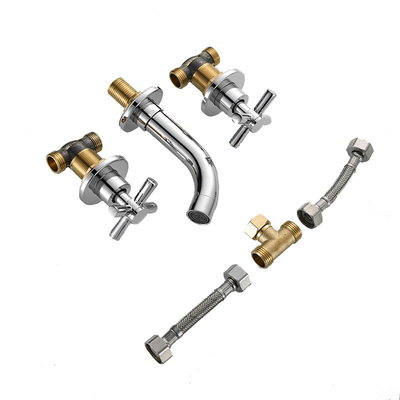 淘宝全铜双把水龙头冷热侧装开关配件三孔分体入墙三件套面盆水龙头
