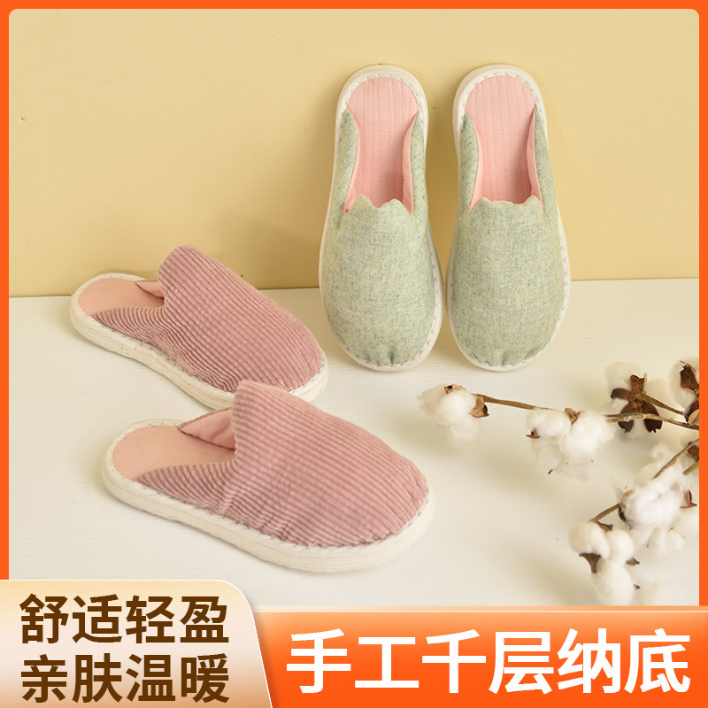淘宝老北京千层底手工布拖鞋居家包头棉拖鞋女冬季加厚保暖毛绒月子鞋