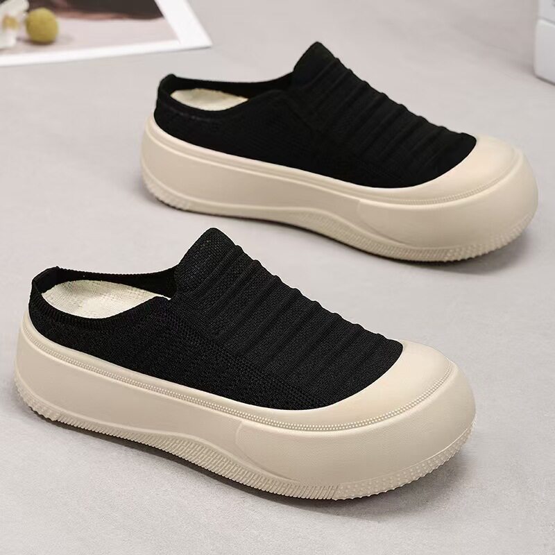 淘宝2026夏季时尚百搭半拖鞋女透气飞织简约休闲鞋厚底防滑老北京布鞋