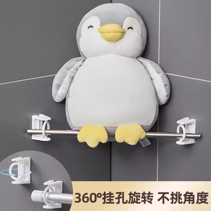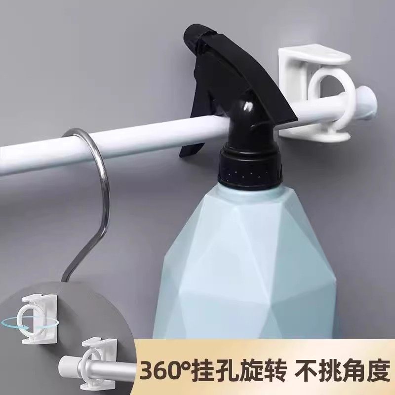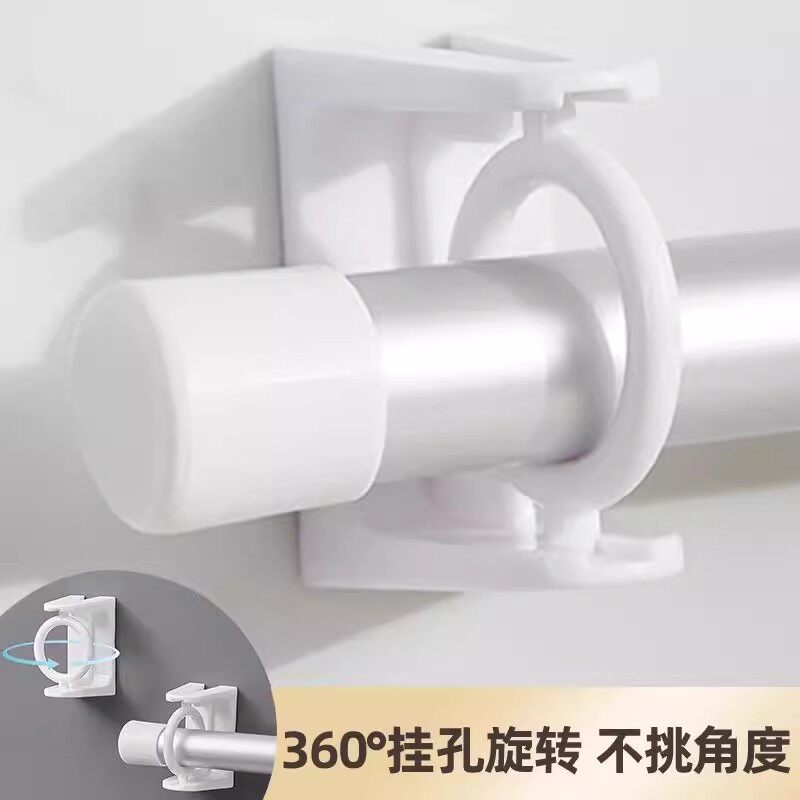 淘宝可旋转圆环挂钩免打孔强力粘胶粘钩毛巾杆固定支架伸缩杆窗帘杆托