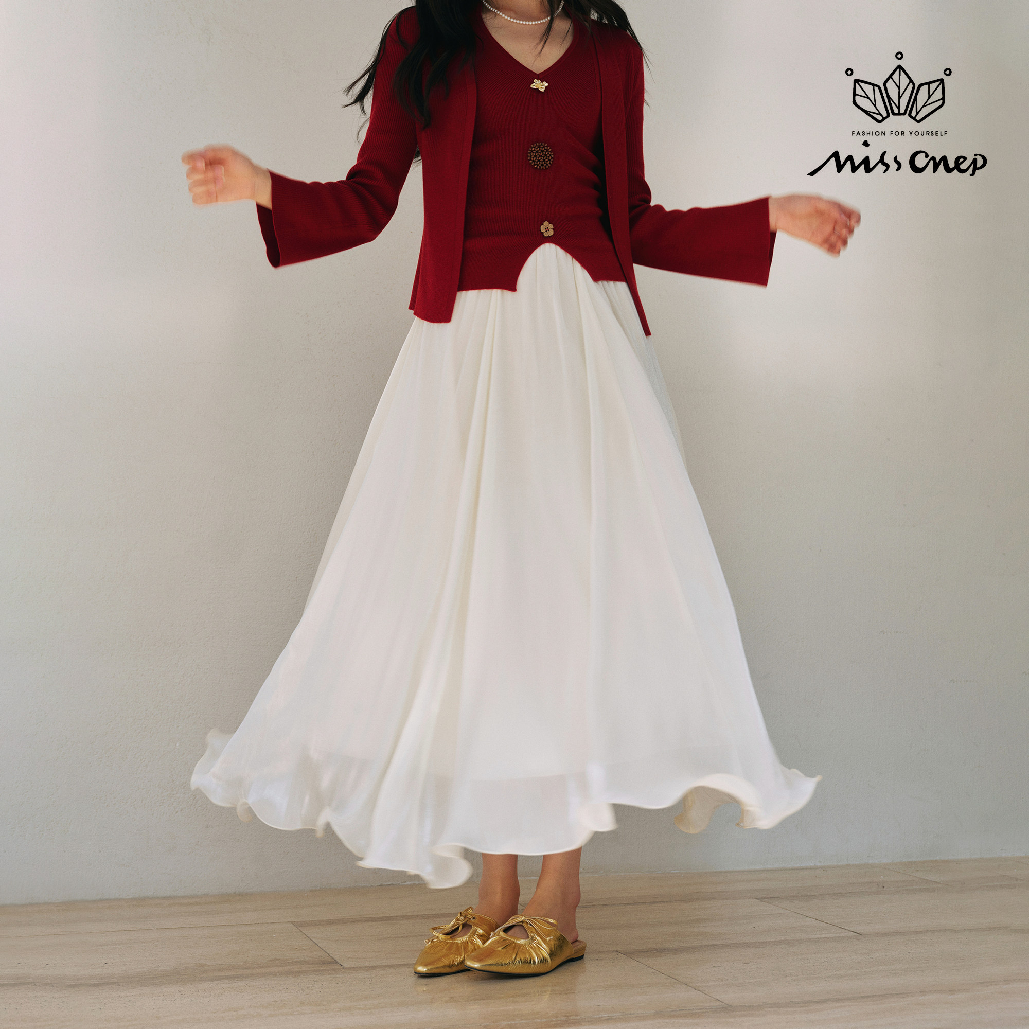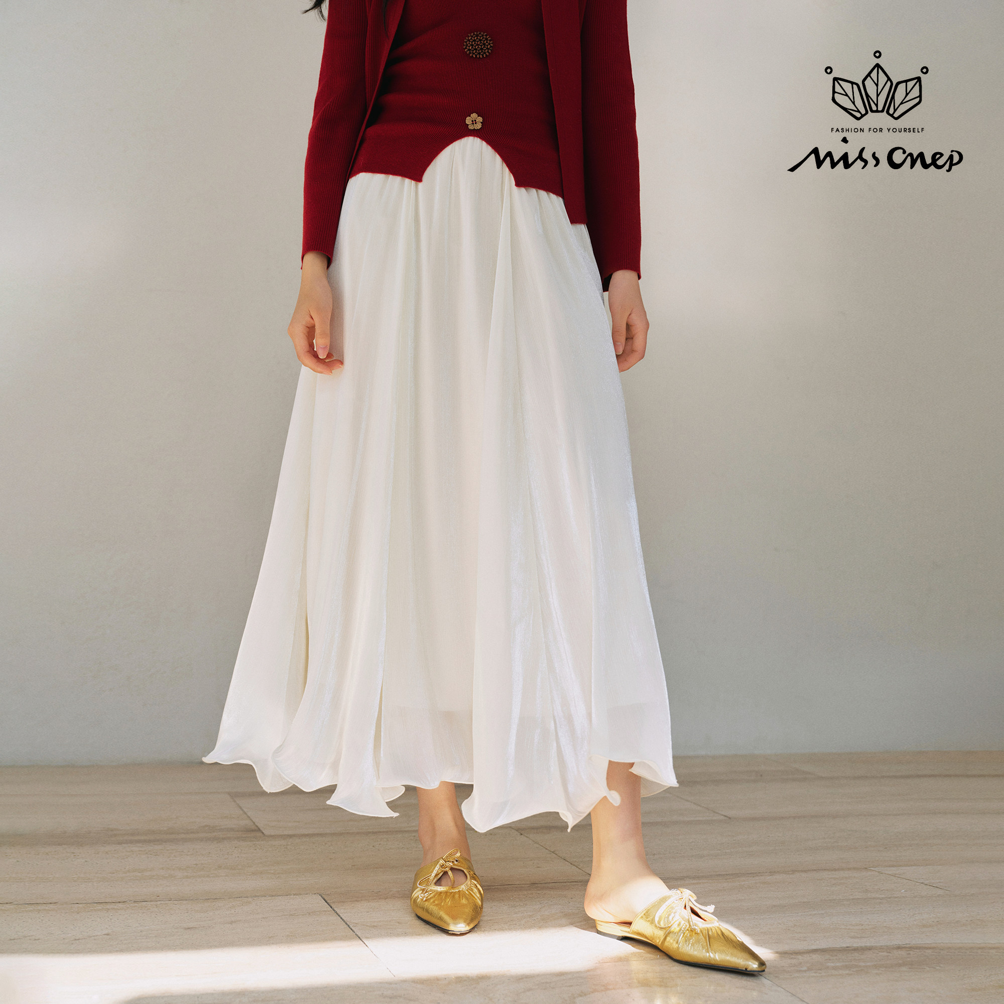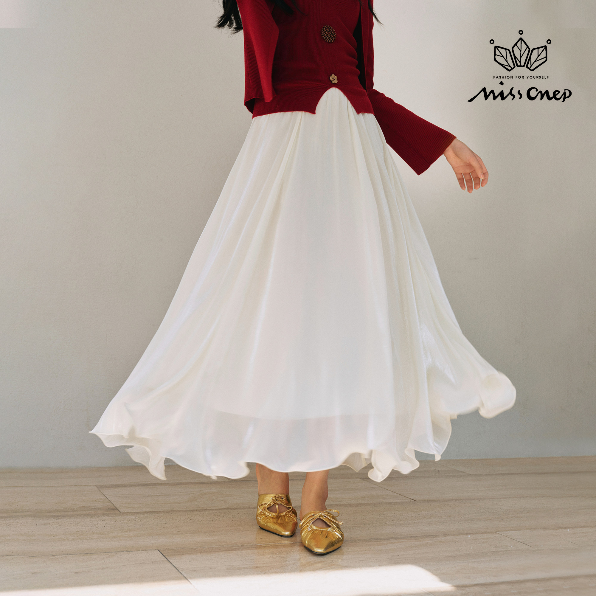 Missonep蝉【人鱼姬】百搭杏色垂坠感长款流光大裙摆半身裙,以柔美杏色为基调,融合细腻人鱼姬光泽,在春夏阳光下呈现梦幻渐变效果。精选高垂感面料,自然流畅地勾勒身形,长款设计搭配灵动大裙摆,行走间摇曳生姿,尽显优雅气质。高腰剪裁优化比例,包容各种身材,轻松搭配针织衫、衬衫或吊带,适配通勤、约会与度假多种场合。无论是日常出行还是特殊聚会,这款半身裙都能为你增添一抹浪漫与高级感,是春夏衣橱中不可或缺的时尚单品。