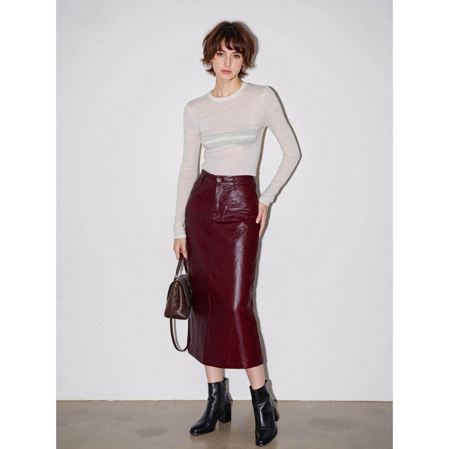 BasicHouse(百家好)这款PU皮半身裙,专为春季打造,融合时尚与实用。采用优质PU皮革,质感细腻,挺括有型,兼具环保与舒适。高腰设计巧妙拉长腿部线条,中长款包臀直筒版型,完美修饰腰腹与臀腿曲线,展现优雅知性气质。简约利落的一字剪裁,搭配金属拉链或隐形门襟,细节精致。适合通勤、约会或休闲场合,轻松搭配衬衫、针织衫或西装外套,打造干练或柔美的多变风格。四季皆宜,是衣橱中不可或缺的时尚单品,彰显现代女性的自信与魅力。